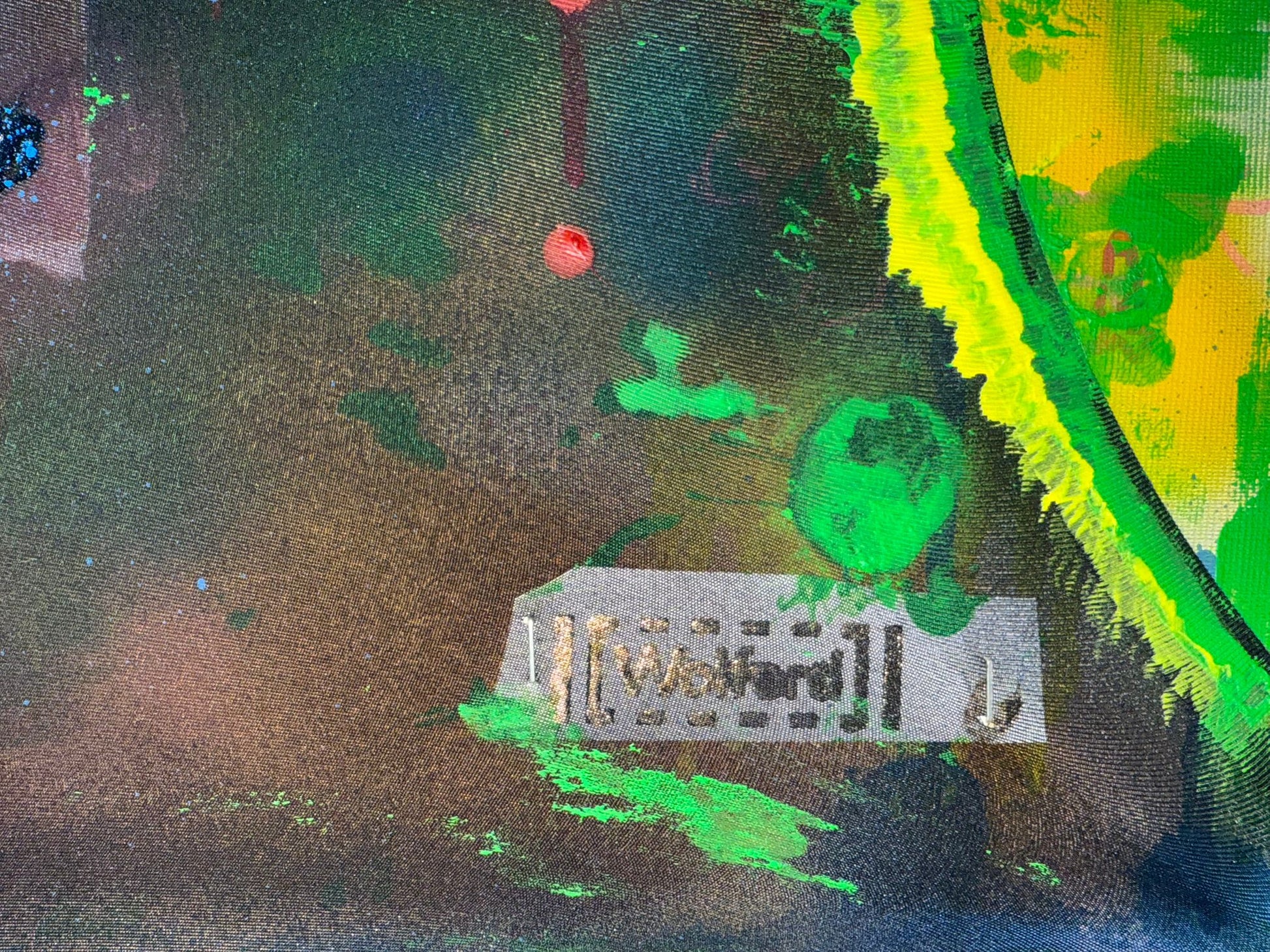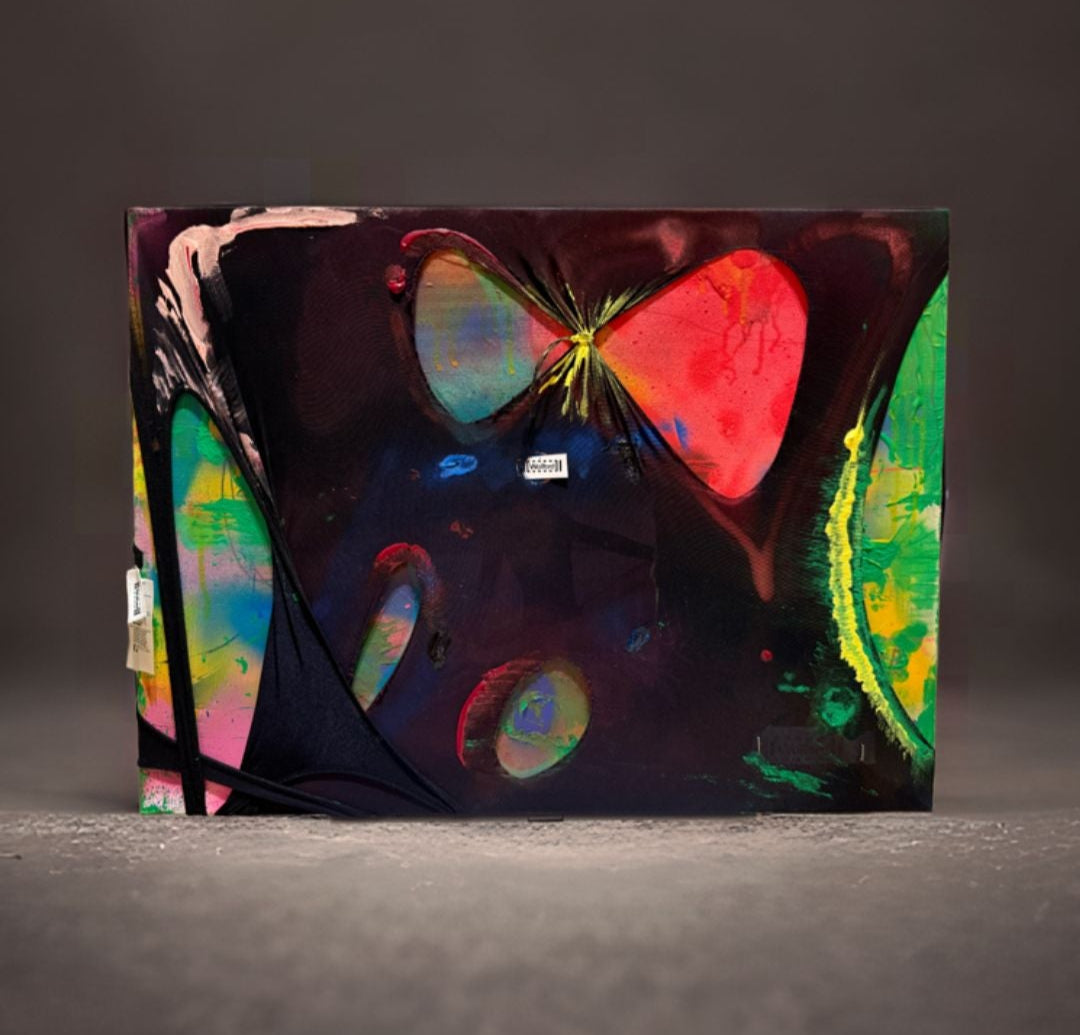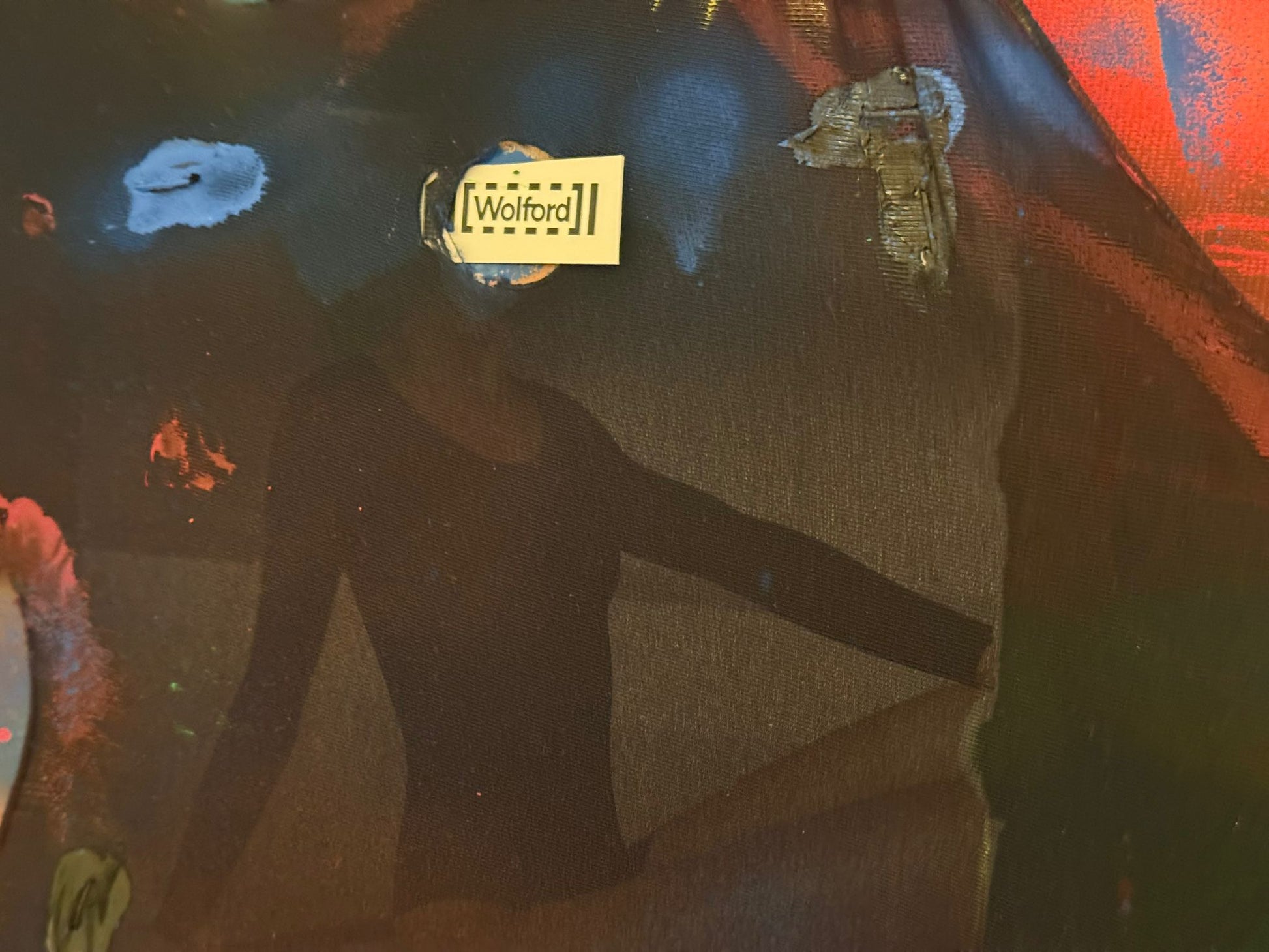 This one-of-a-kind artwork is a fusion of high fashion and fine art, featuring an authentic Wolford top seamlessly integrated into a striking mixed-media painting. A true statement piece, it embodies sophistication, texture, and depth, making it a rare collectible for those who appreciate luxury and exclusivity.