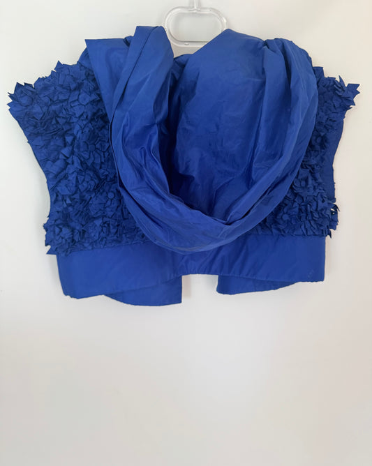 MONCLER Flower Detailed Silk Vest Jacket with Hood in Blue, Size 1 - Very Good Condition