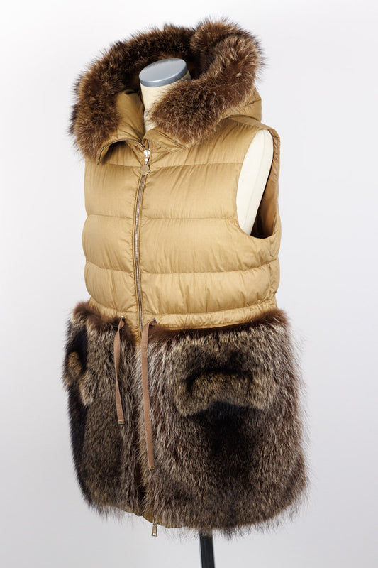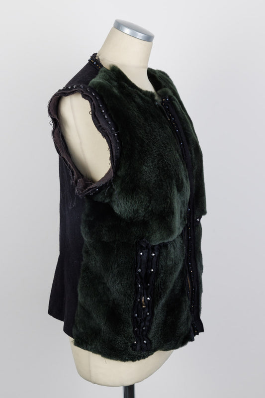LANVIN Lanvin Fourier אפוד פרווה בצבע ירוק כהה מידה 40