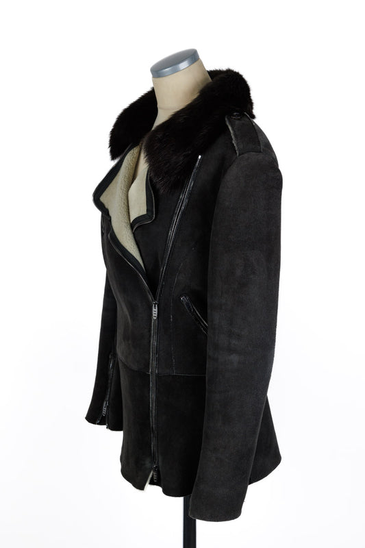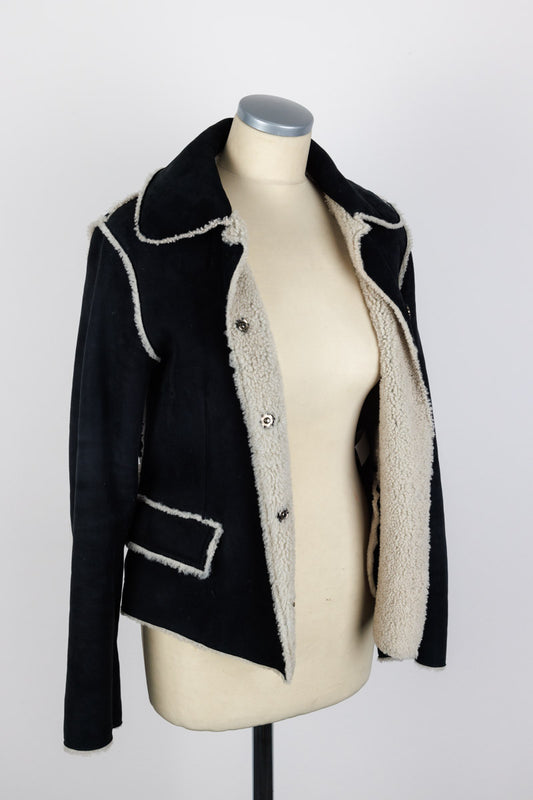 DOLCE & GABBANA דולצ'ה וגבאנה מעיל עור כבש שחור ולבן