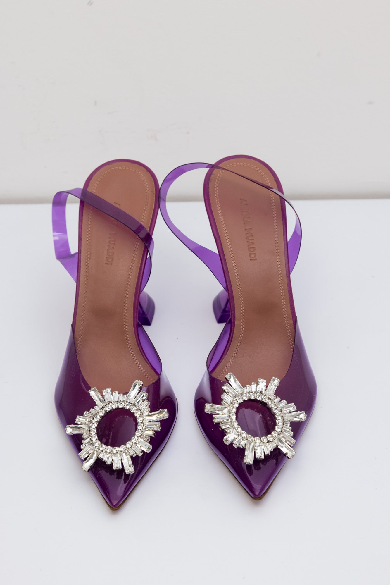AMINA MUADDI משאבות Slingback מעוטרות בזכוכית בגום סגולה