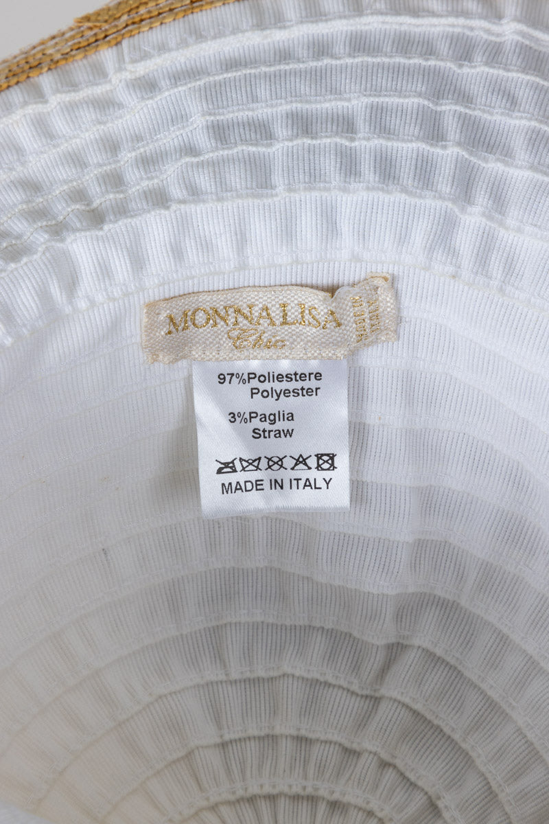 הרם את הסגנון של הילדה הקטנה שלך עם כובע השמש הלבן של MONNALISA המעוטר בפרחים צהובים ומענגים. כובע זה מיוצר בעבודת יד באיטליה, משדר אלגנטיות וקסם. מצבו הטוב מאוד מבטיח איכות ועמידות, מה שהופך אותו לאביזר מושלם להרפתקאות שטופות שמש וימים שובבים.