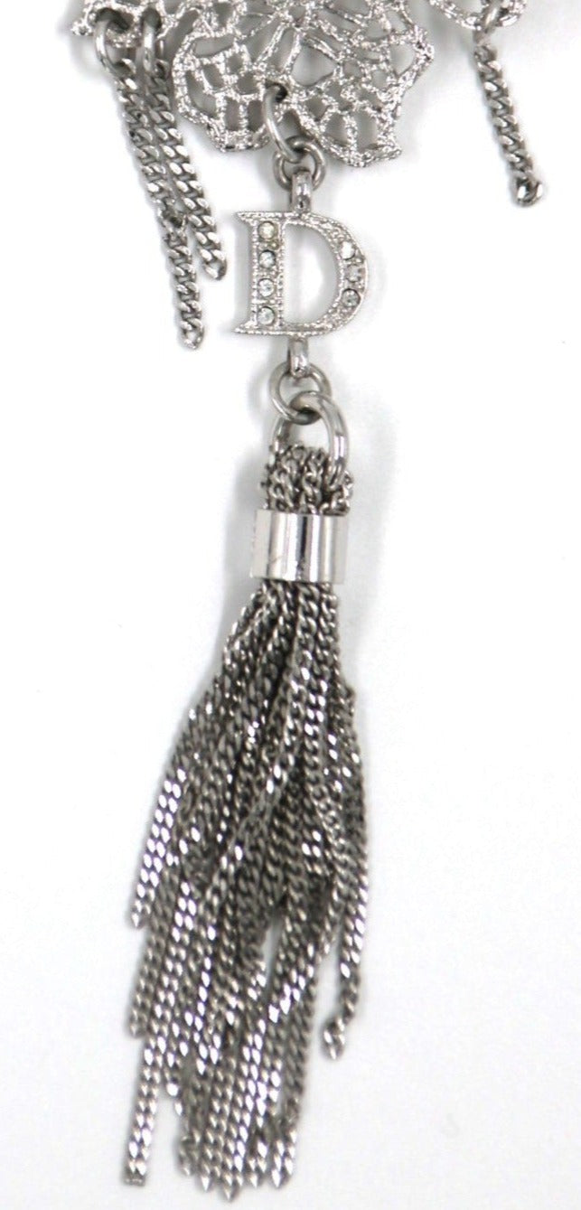 Enhance Your Look with DIOR Silver Filigree Tassel Clips Earrings, featuring a Stunning White Stone and Iconic D Letter. These exquisite earrings showcase a silver filigree tassel design, infusing sophistication into any outfit. Designed as clips for effortless wearing, they make the ideal accessory to elevate your ensemble. Discover timeless elegance with DIOR.