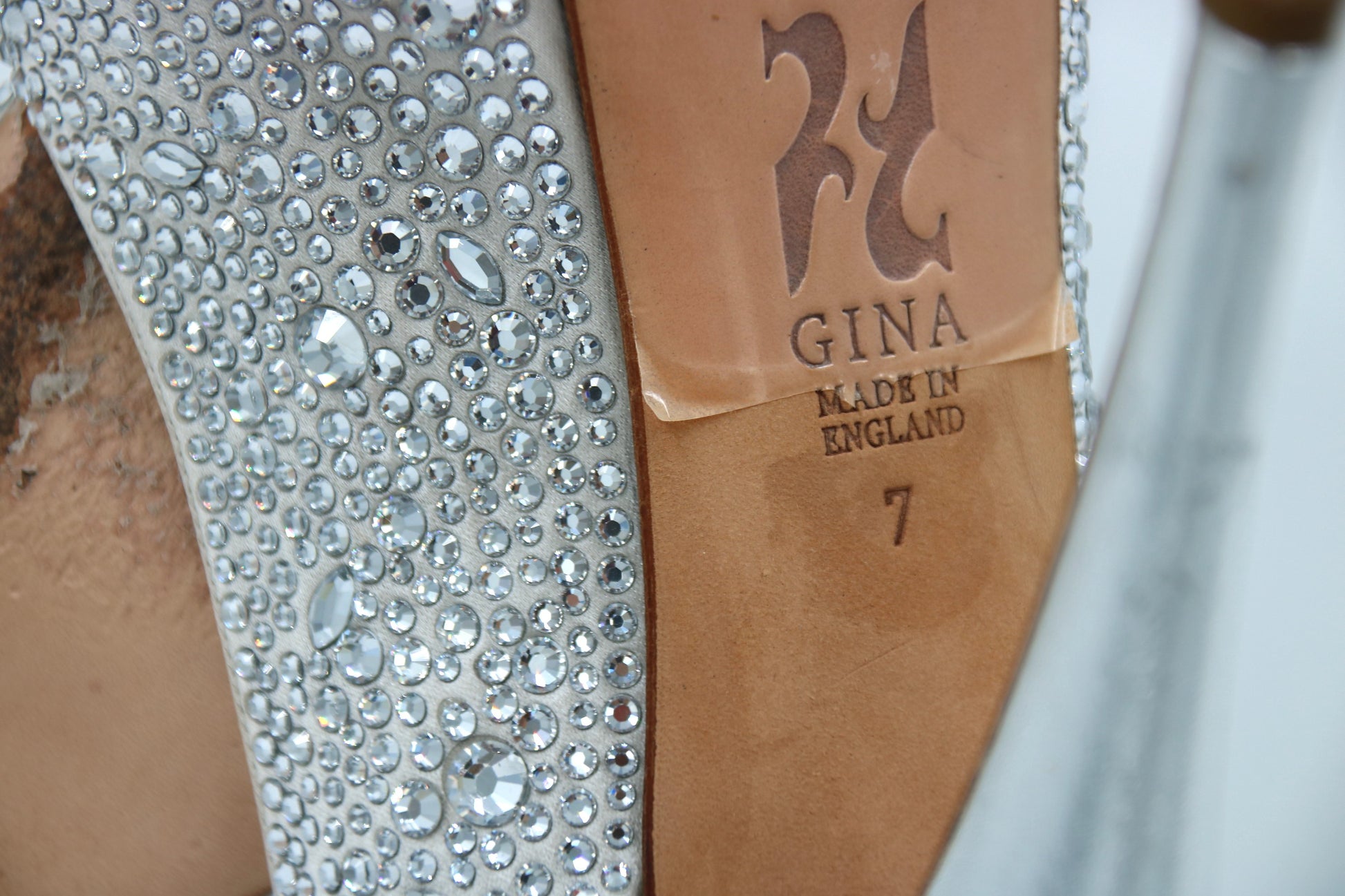 GINA Silver Satin Crystal Embellished Peep Toe Platform Slingback Sandals Size 7 UK provide sophisticated style with their intricate crystal detail. The peep toe and platform makes these sandals comfortable all day long, while the silver satin fabric adds an elegant, classic touch. Perfect for any special occasion.