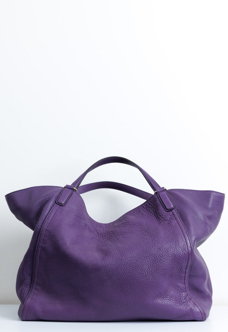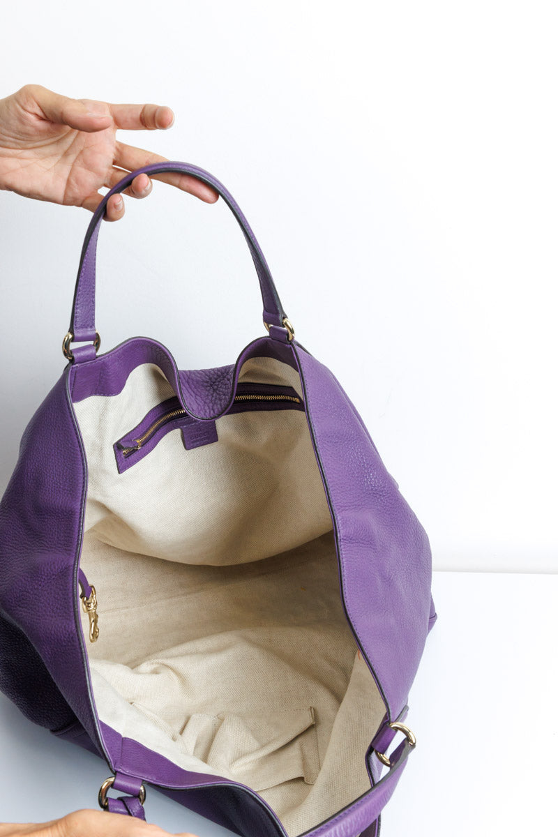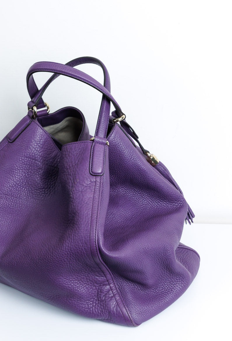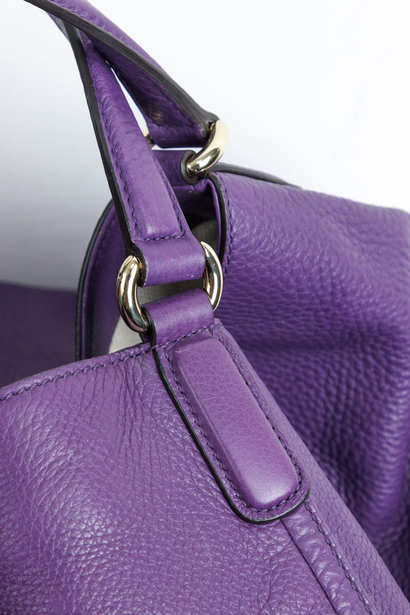 GUCCI Purple Pebbled Leather Medium Soho Tote | Signature GG Design