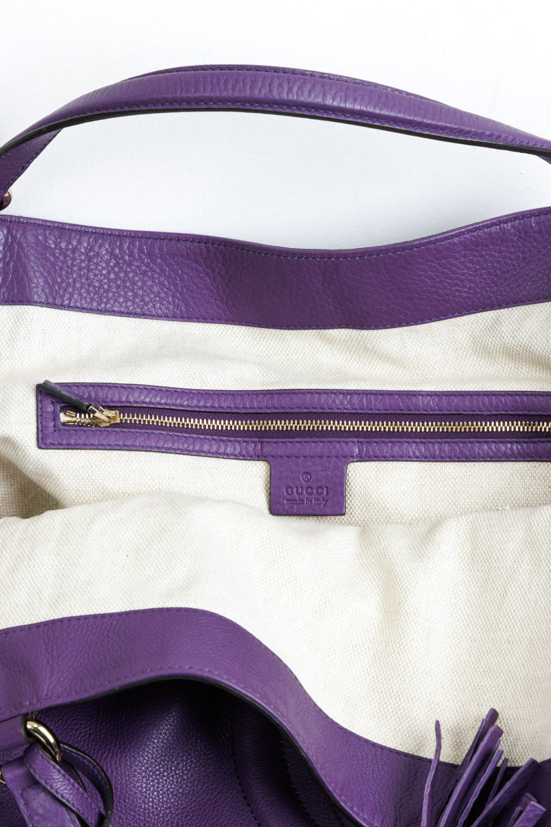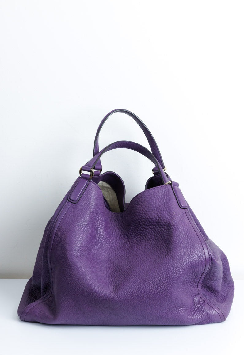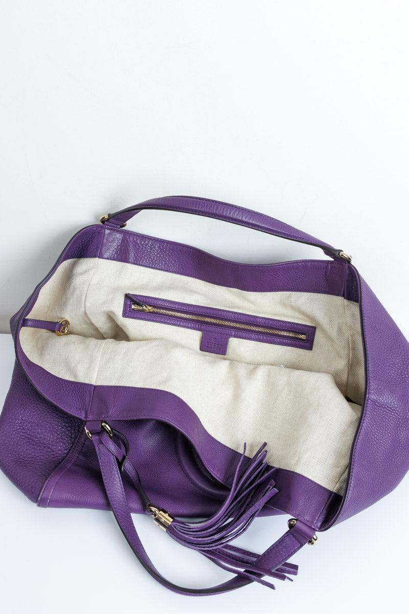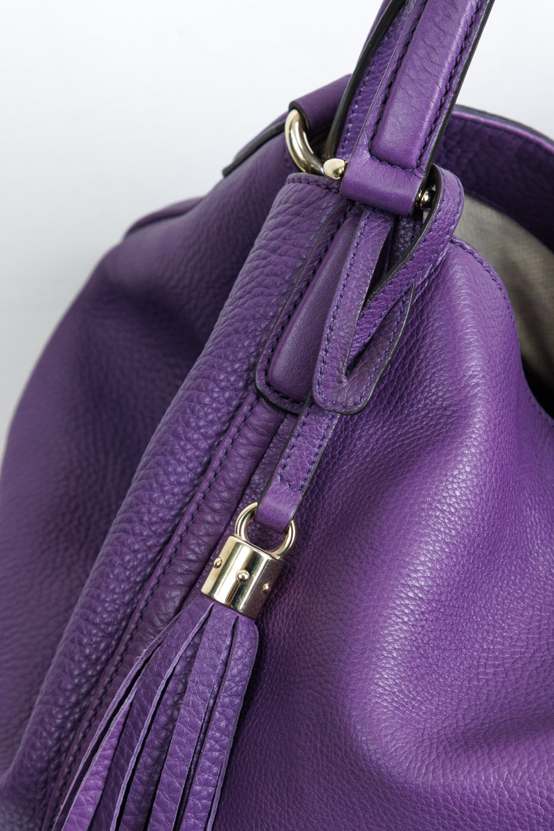 GUCCI Purple Pebbled Leather Medium Soho Tote | Signature GG Design