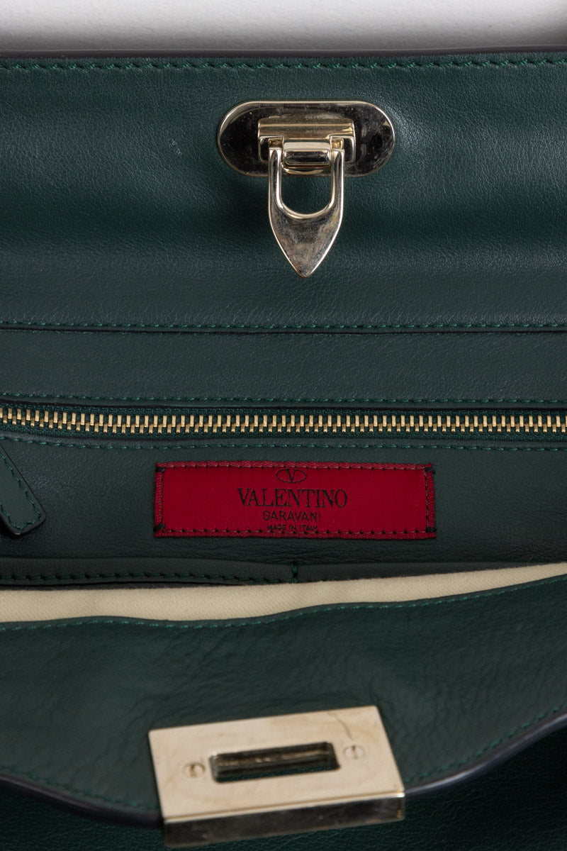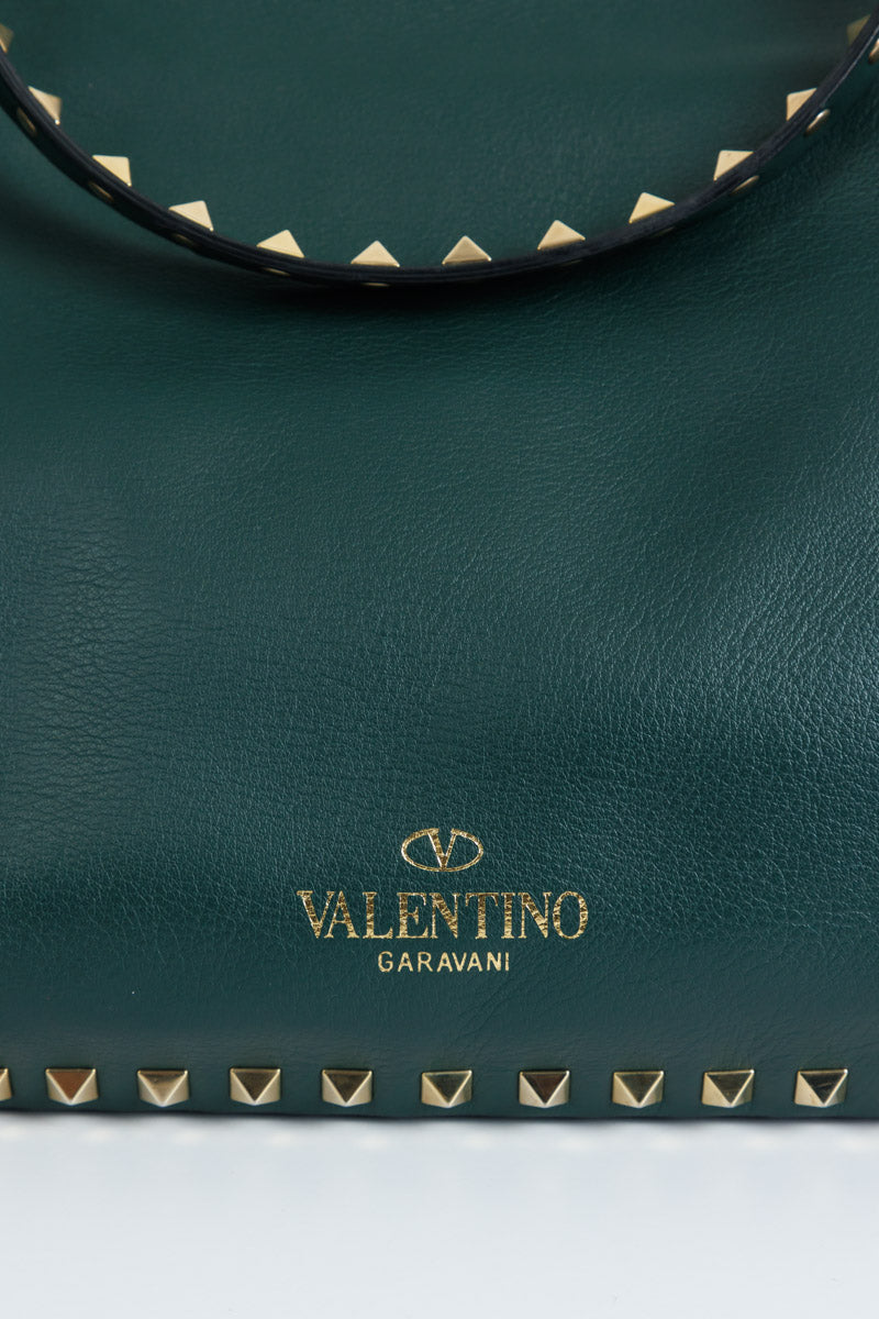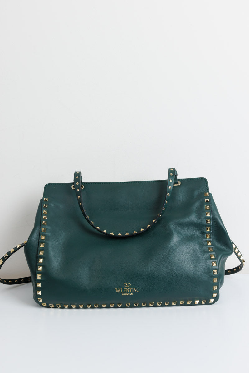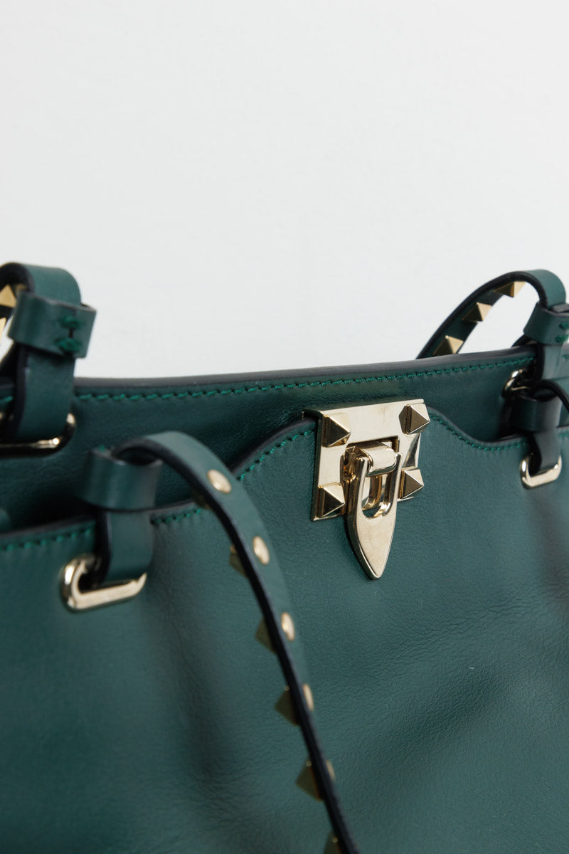 VALENTINO GARAVANI Rockstud Medium Tote Green Calf Leather