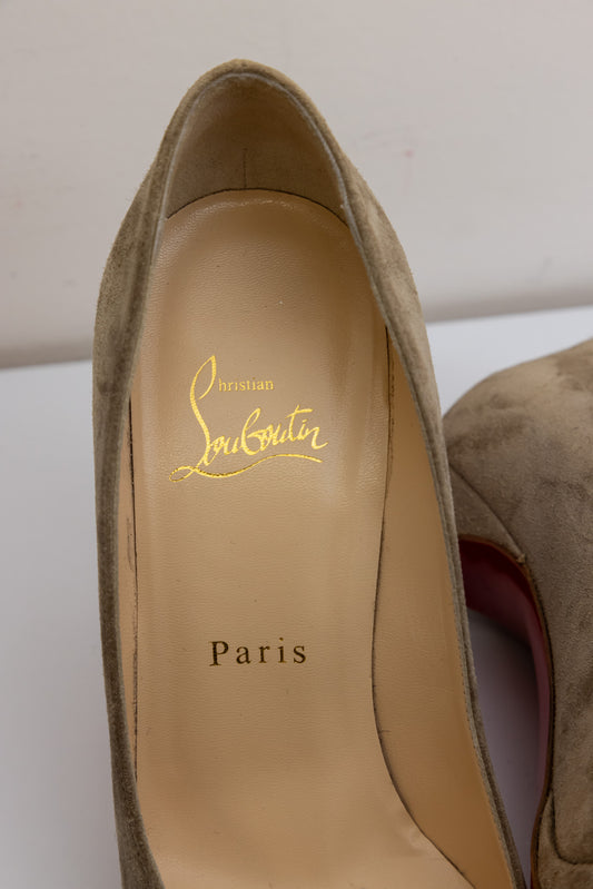 CHRISTIAN LOUBOUTIN Серые замшевые туфли-лодочки с красной подошвой и круглым носком