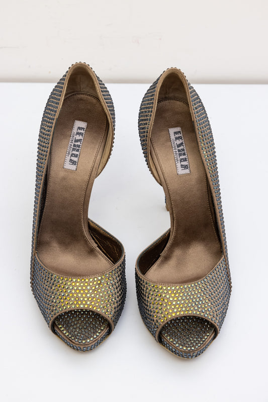 Золотые туфли-лодочки LE SILLA с кристаллами — лимитированная серия с открытым носком (024/050)