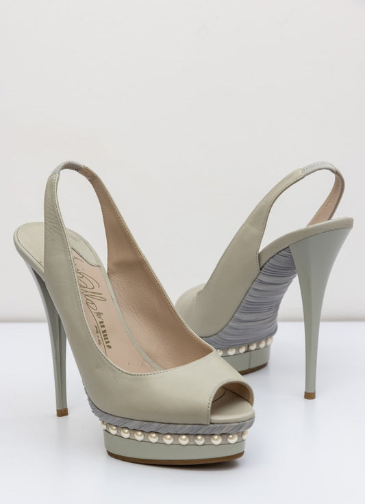 LE SILLA Светло-серые кожаные туфли на каблуке с жемчужной подкладкой