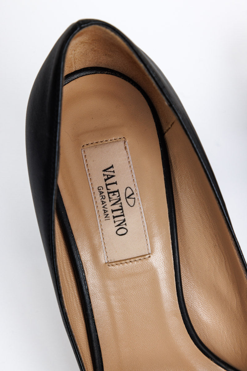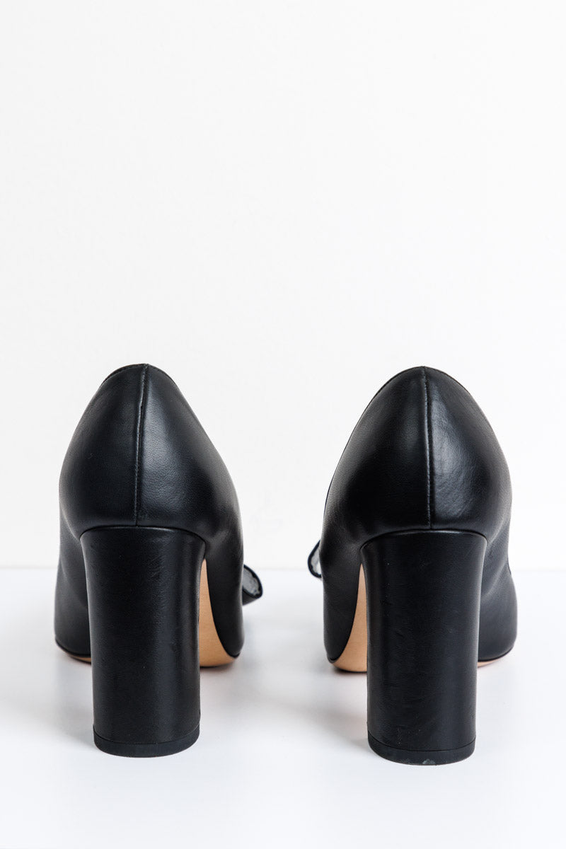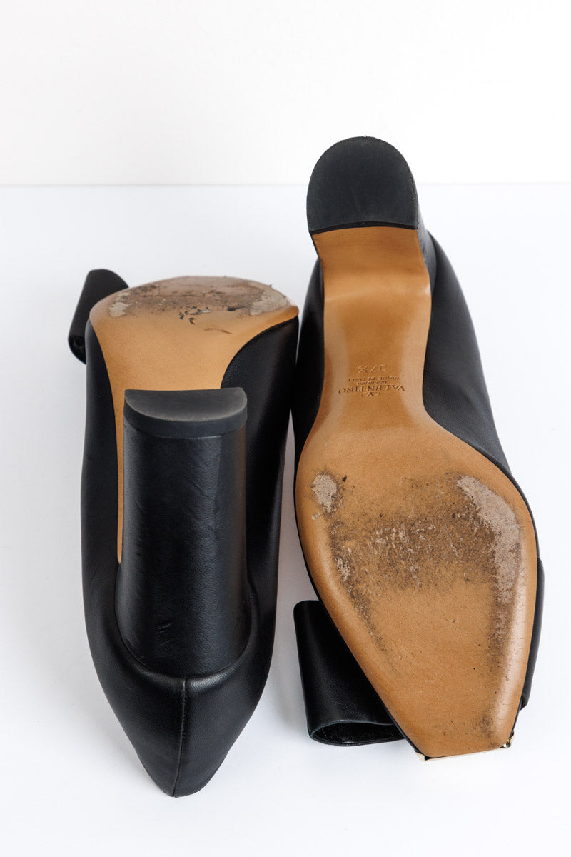 VALENTINO GARAVANI Черные кожаные туфли-лодочки на блочном каблуке с бантом