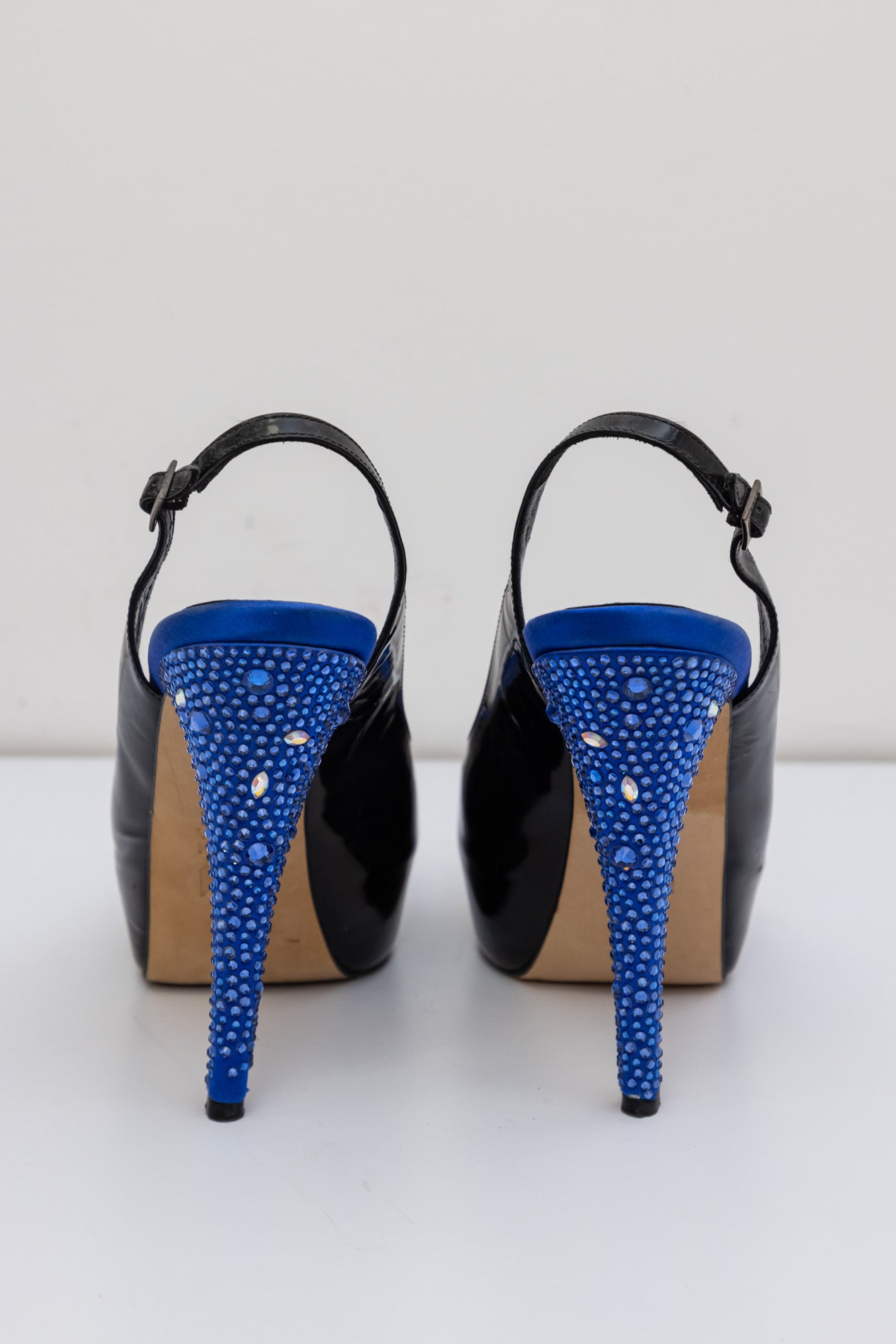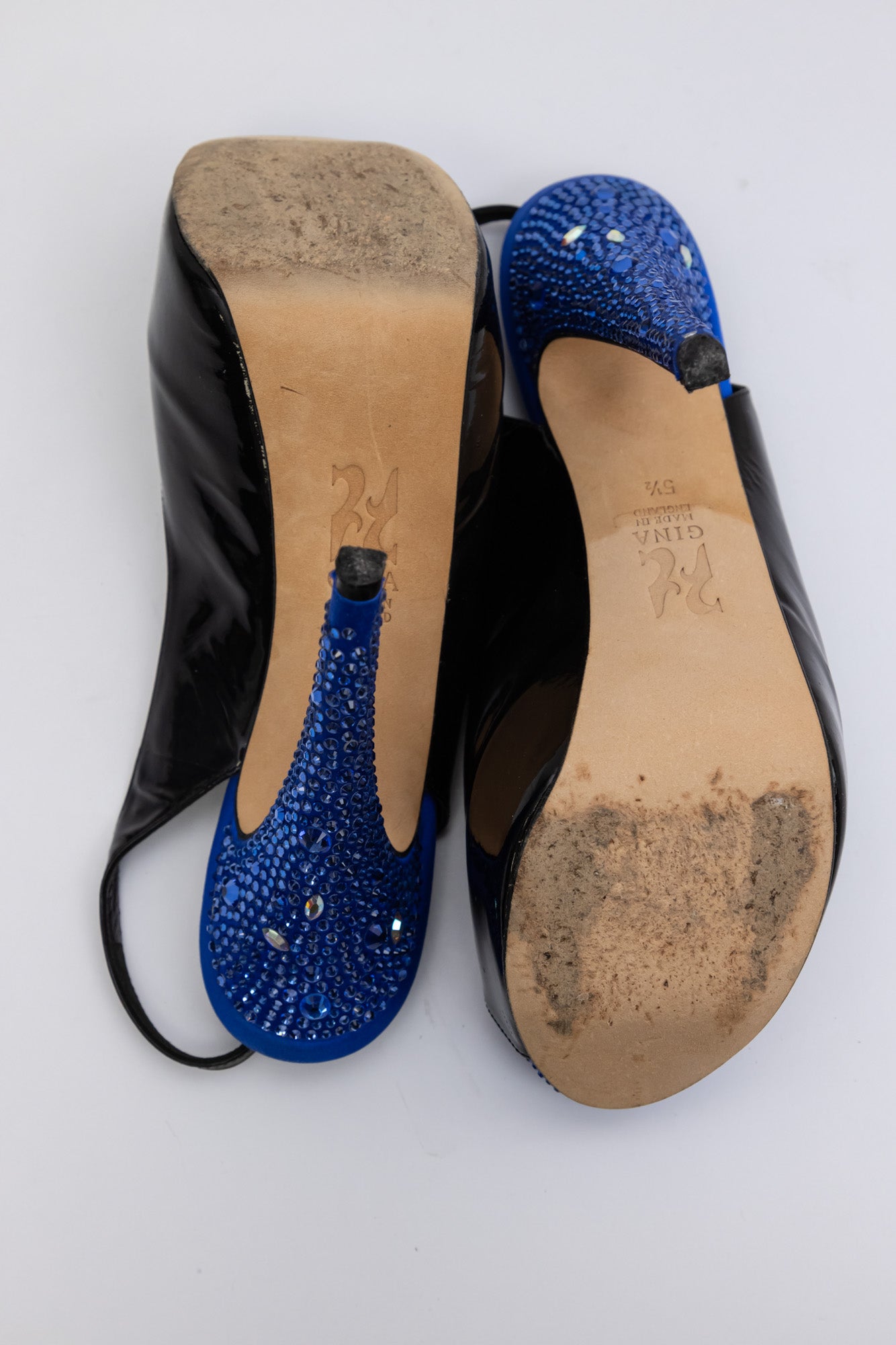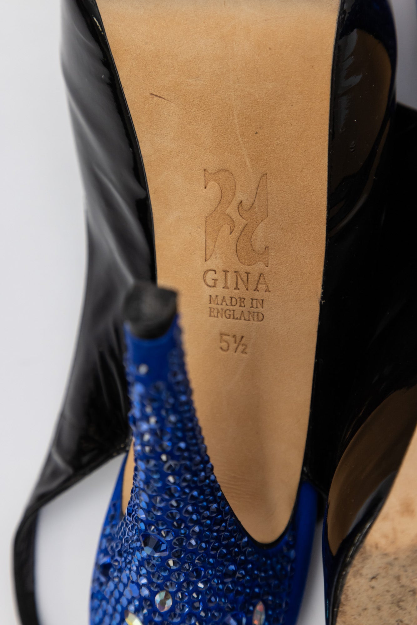 Окунитесь в утонченный гламур с этими босоножками на каблуке с ремешком на пятке GINA из лакированной кожи с открытым носком. Эти сандалии из гладкой лакированной кожи, изготовленные в Англии, излучают элегантность. Дизайн с открытым носком добавляет привлекательности, а ремешок с ремешком на пятке обеспечивает надежную посадку. Эти сандалии, украшенные потрясающими голубыми кристаллами, придают образу сверкающий вид. Имея размер UK 5,5, они обеспечивают удобную посадку.
