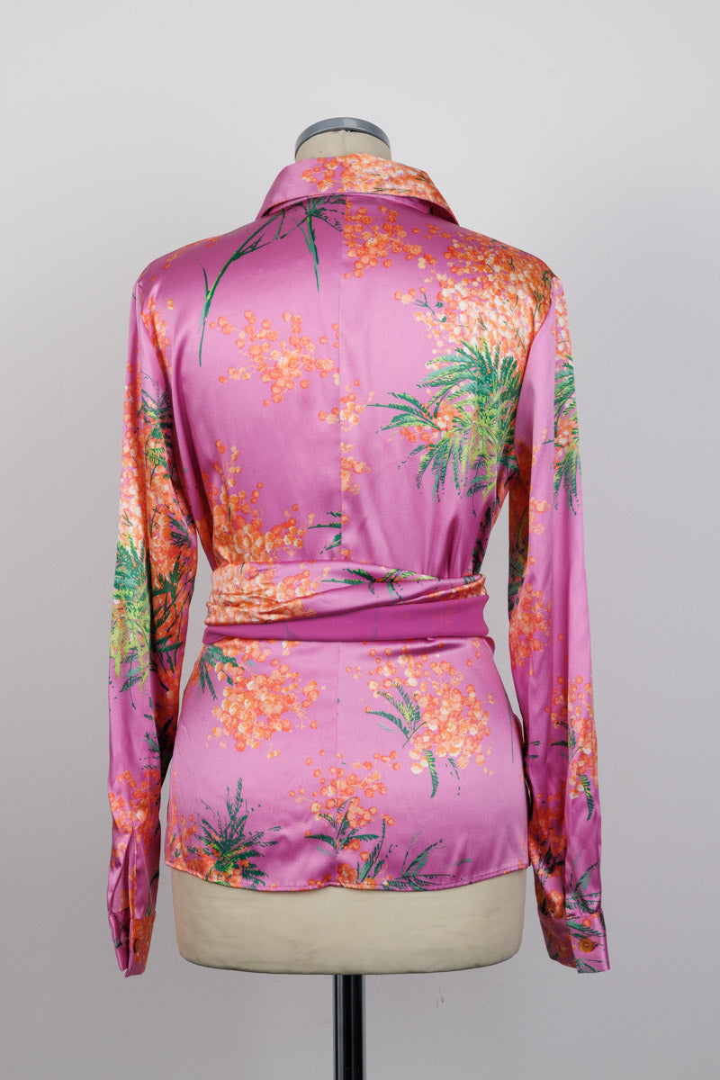 BLUMARINE Розовая шелковая рубашка-кимоно с цветочным принтом и пояс-кимоно