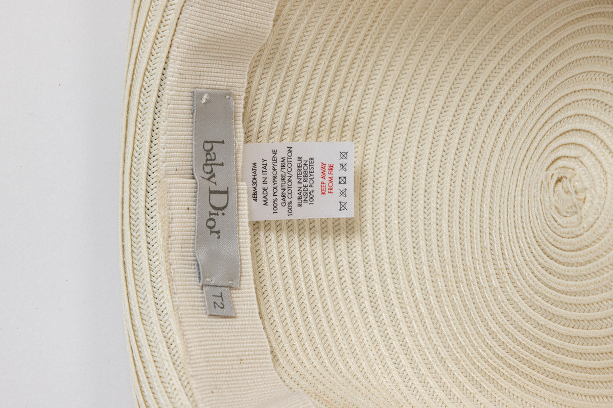 Оденьте своего малыша в неподвластную времени элегантность с помощью этой изысканной белой соломенной шляпы Baby Dior. Эта шляпа, украшенная красивой лентой с голубым цветком и бантом, излучает изысканность и очарование. Созданный с заботой в Италии, он может похвастаться первоклассным качеством и комфортом для вашего ребенка. Эта дизайнерская вещь, доступная в размере T2 (Детский), идеально подходит для солнечных дней и особых случаев.