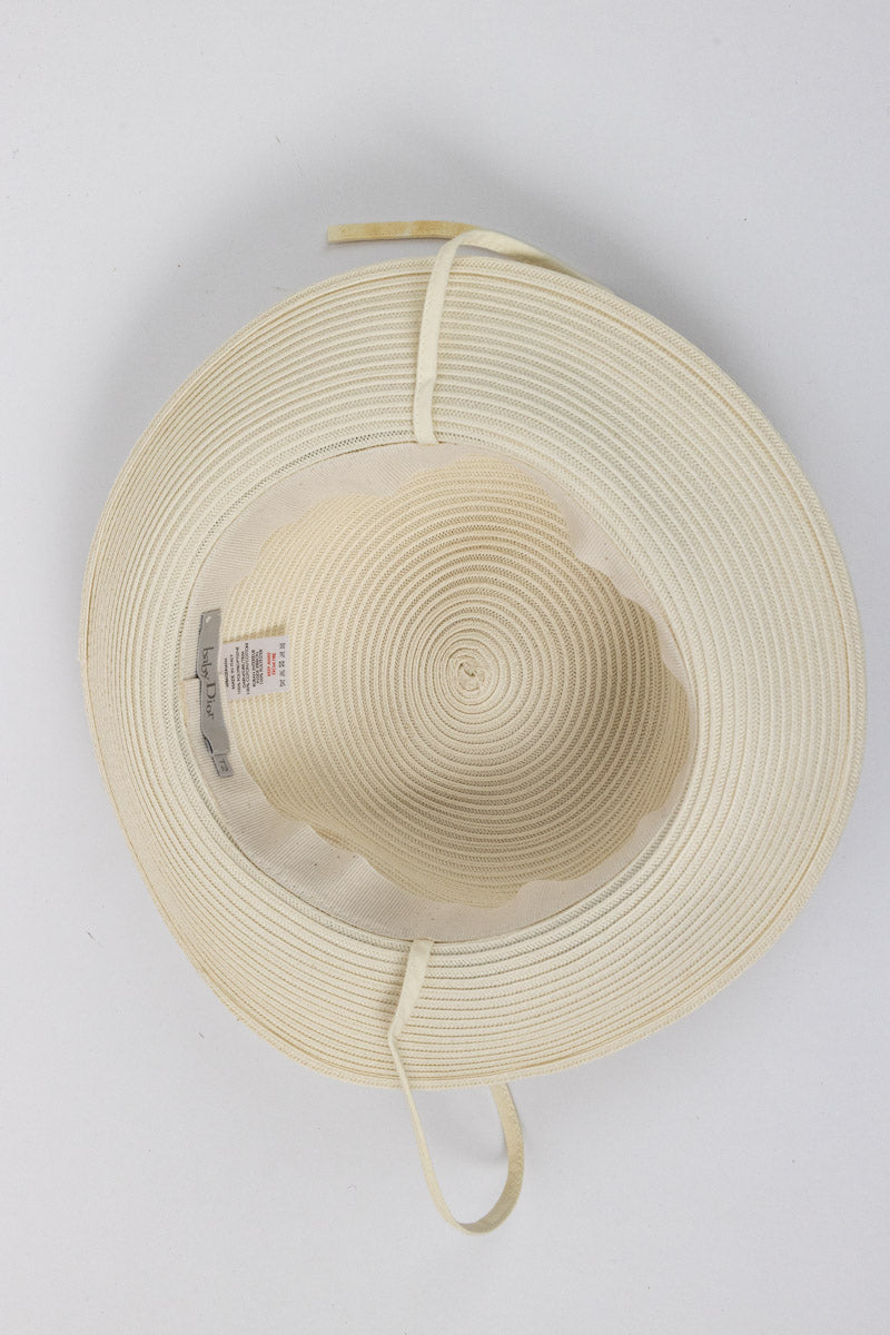 Элегантная белая соломенная шляпа Baby DIOR с лентой с голубым цветком