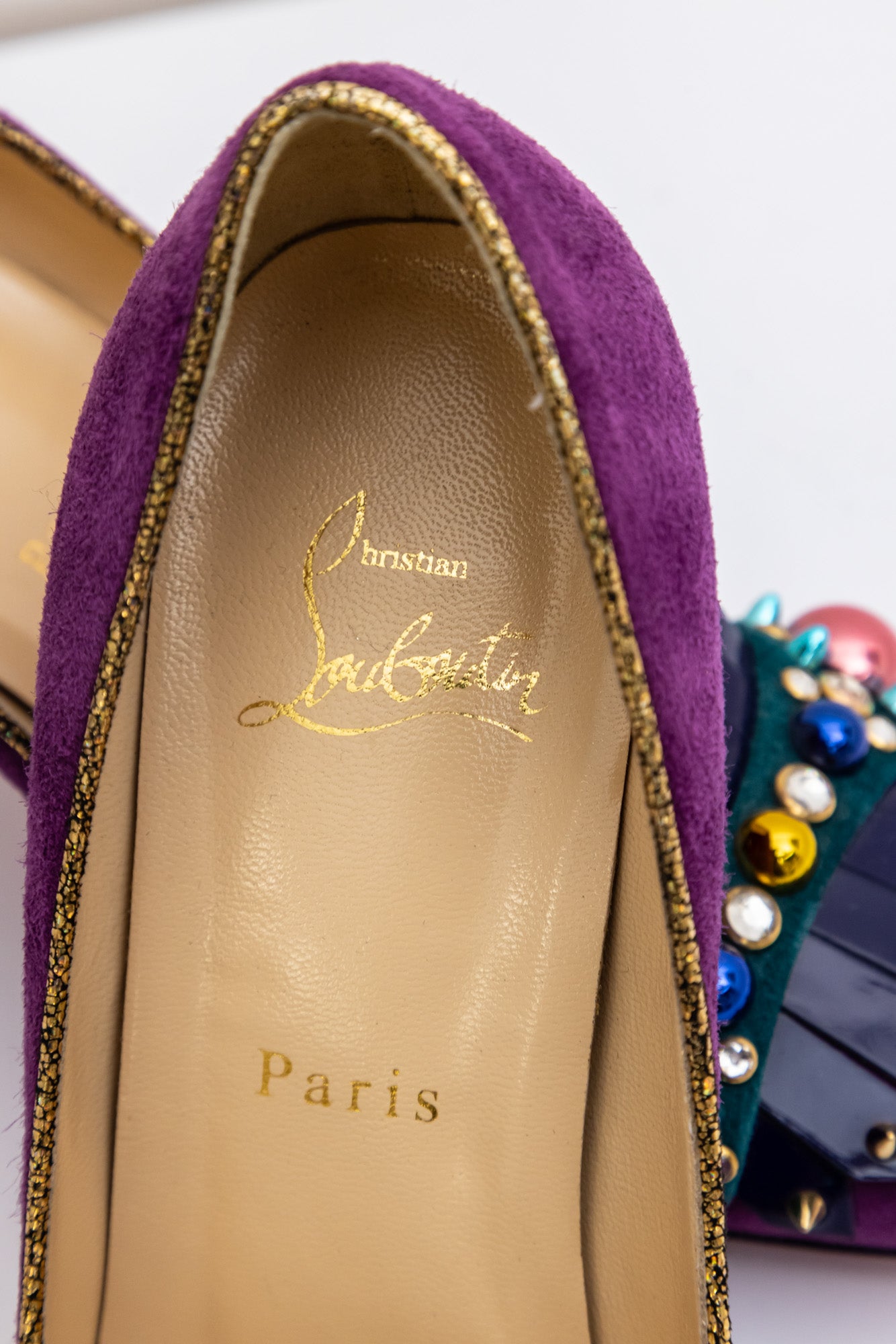 CHRISTIAN LOUBOUTIN Фиолетовые замшевые туфли Oaxacana с драгоценными камнями