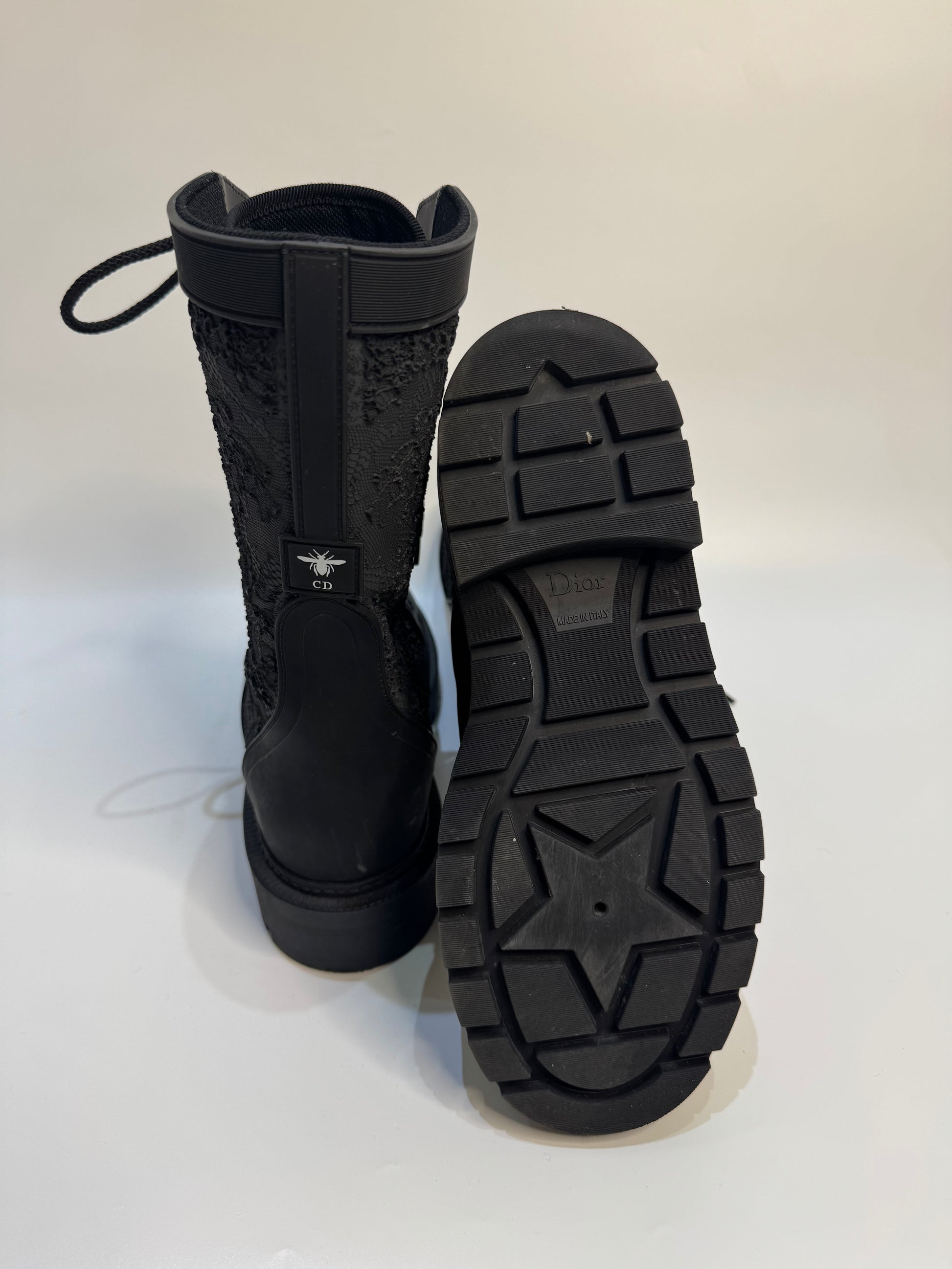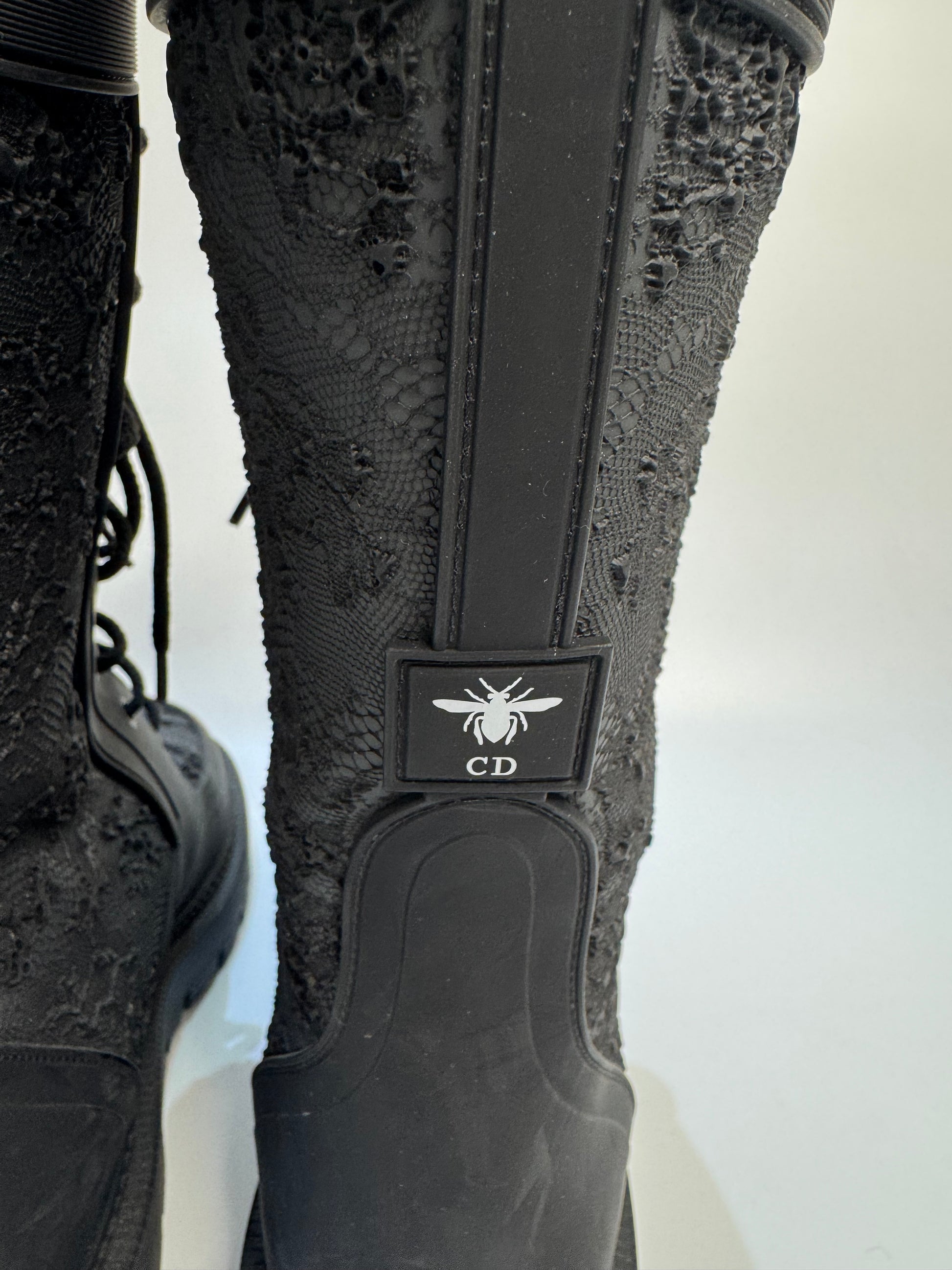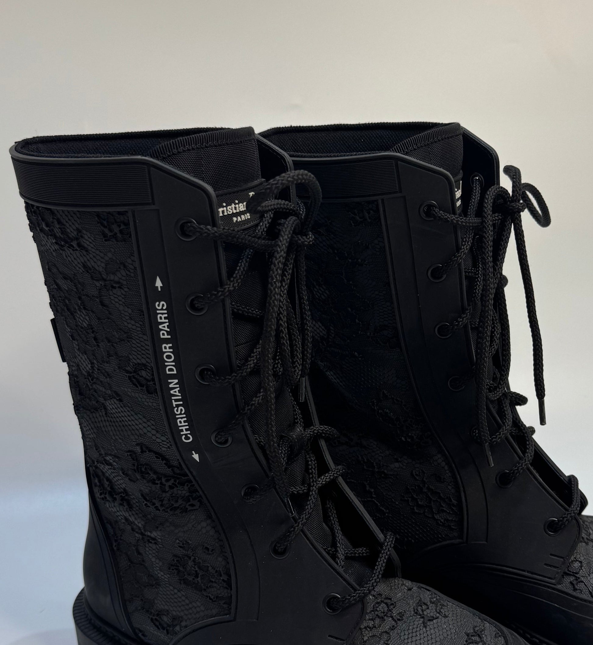 CHRISTIAN DIOR Black Lace Rubber Combat Boots - Size 38 | Excellent Condition