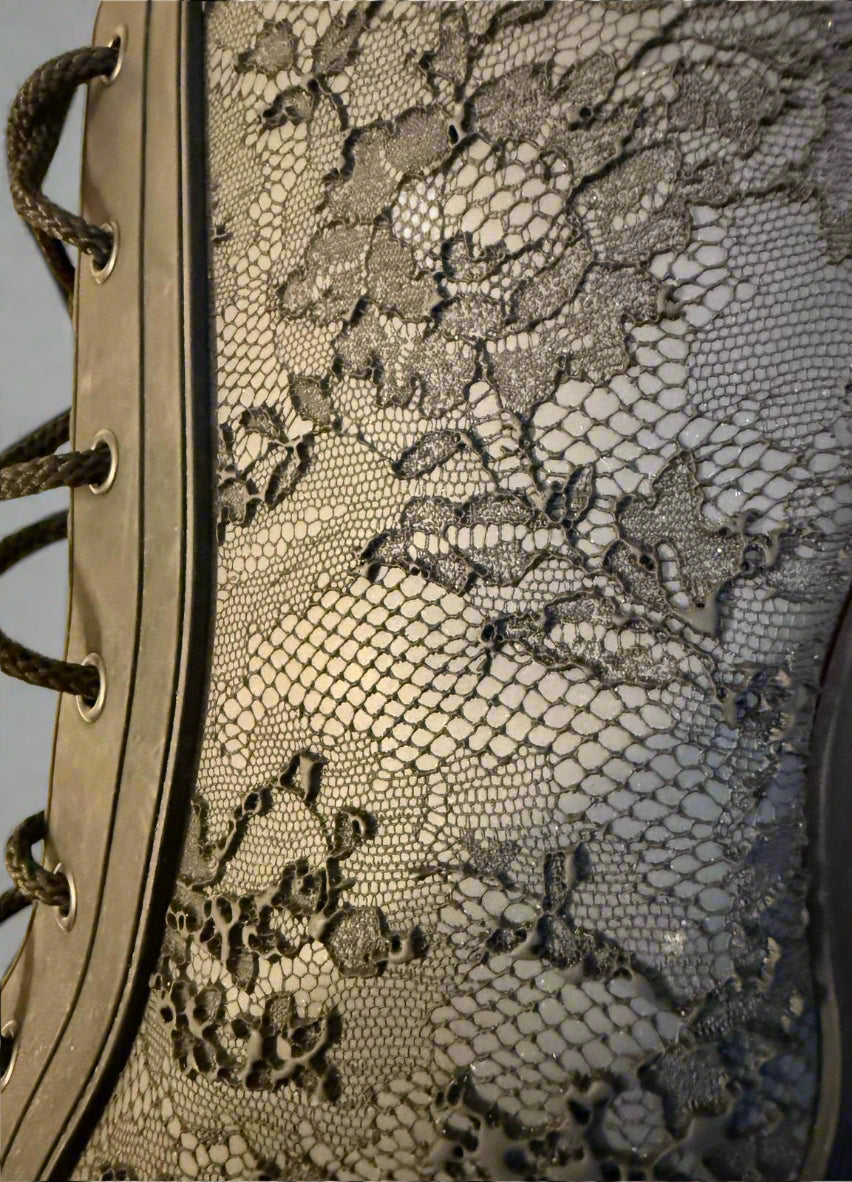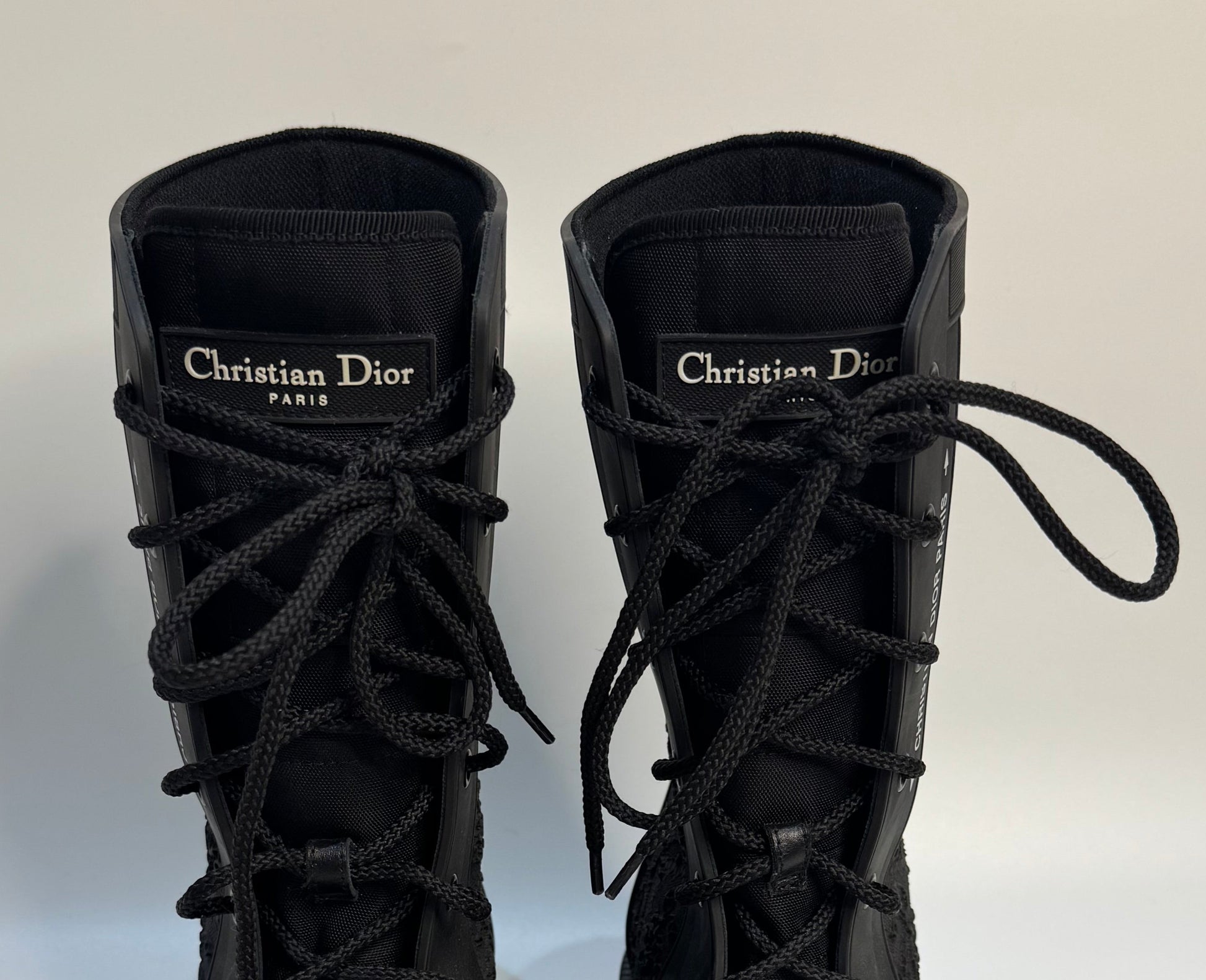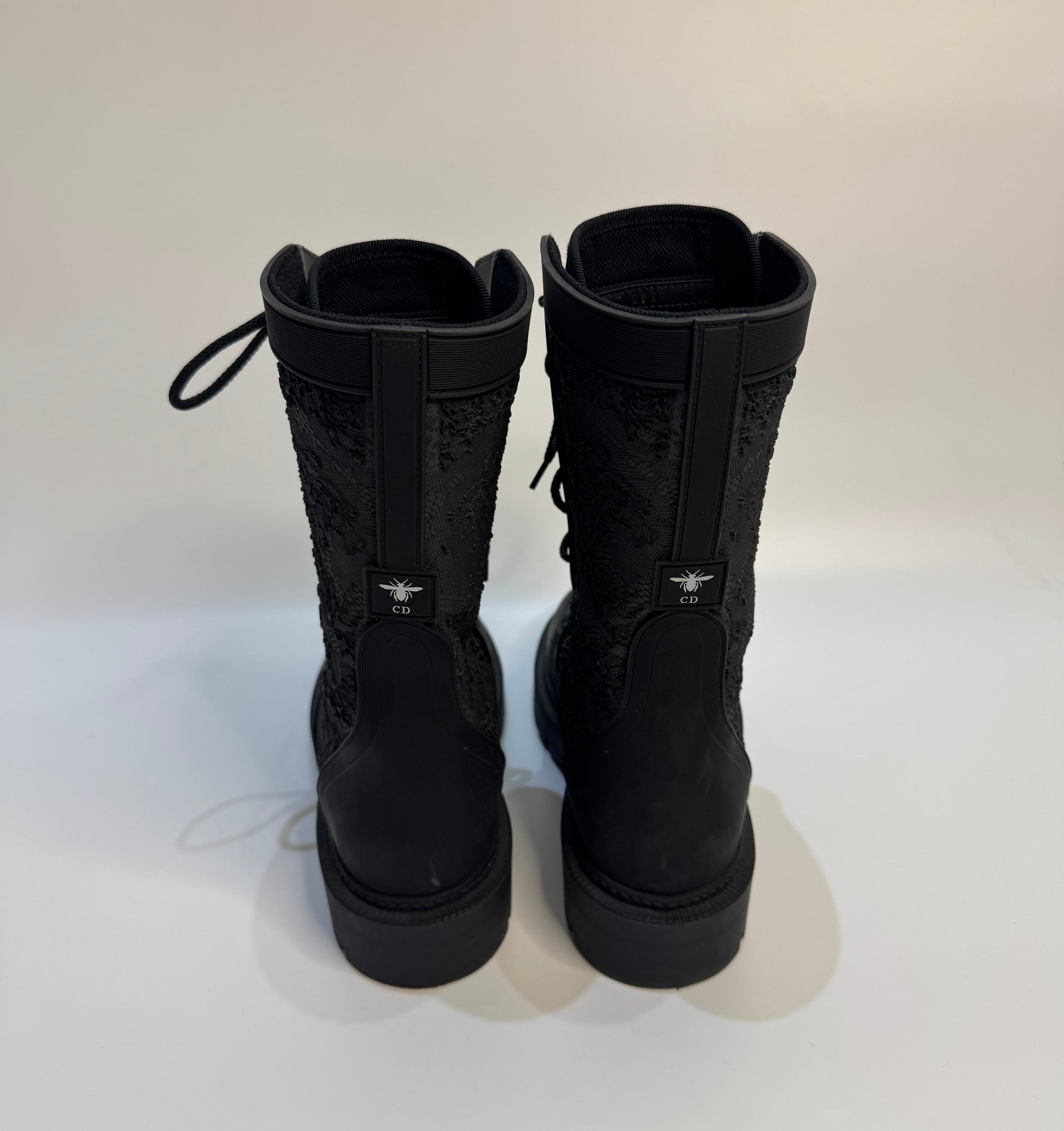 CHRISTIAN DIOR Black Lace Rubber Combat Boots - Size 38 | Excellent Condition