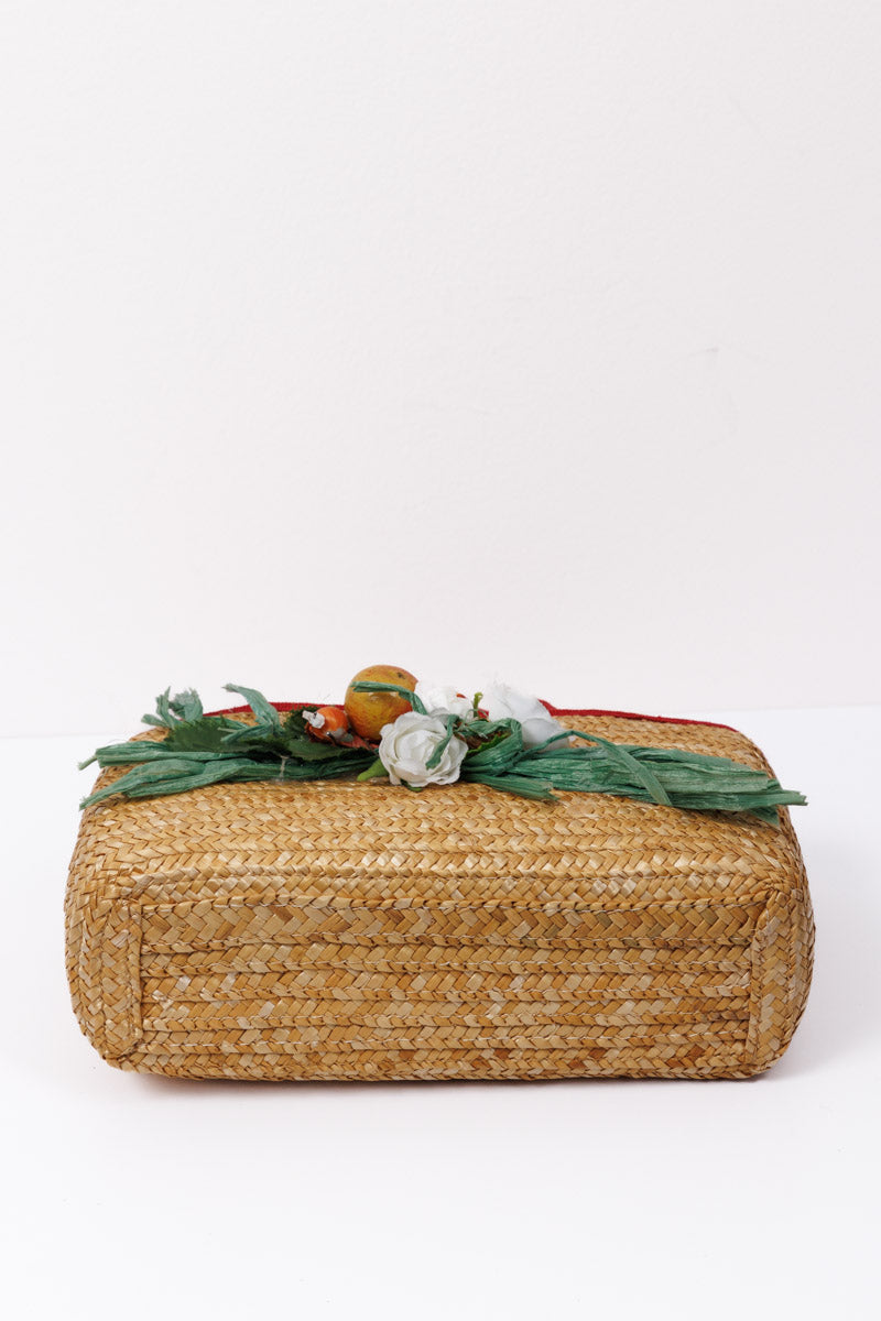 Эта сумка DOLCE & GABBANA Junior Straw tote Hand с украшением в виде фруктов и цветов станет прекрасным дополнением к любому гардеробу. Он сделан в Италии и находится в отличном состоянии. Сумка отличается уникальным дизайном, украшенным фруктами и цветами, что делает ее стильным и привлекательным аксессуаром.