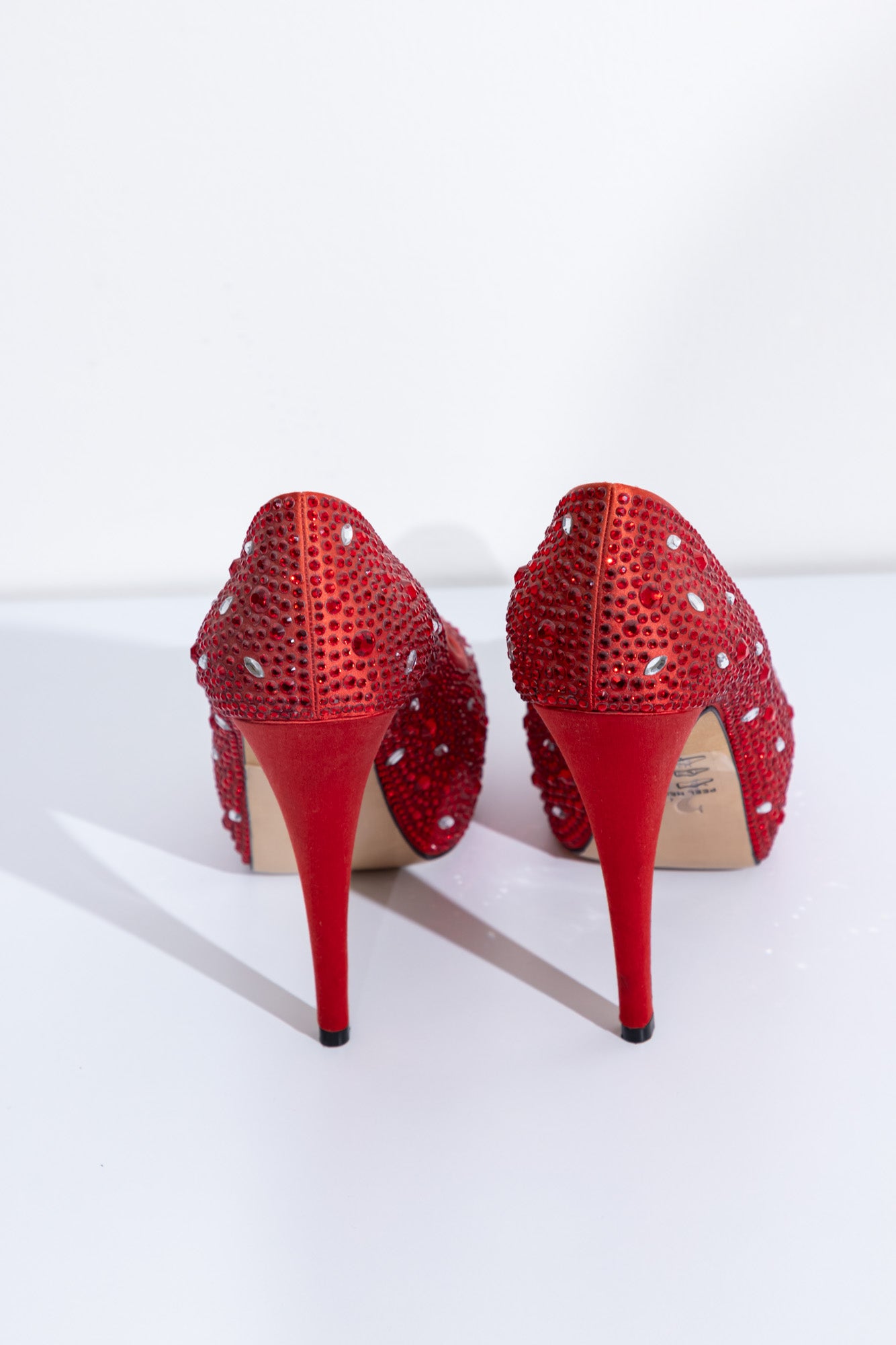 GINA Красные атласные туфли-лодочки на платформе с открытым носком, украшенные кристаллами