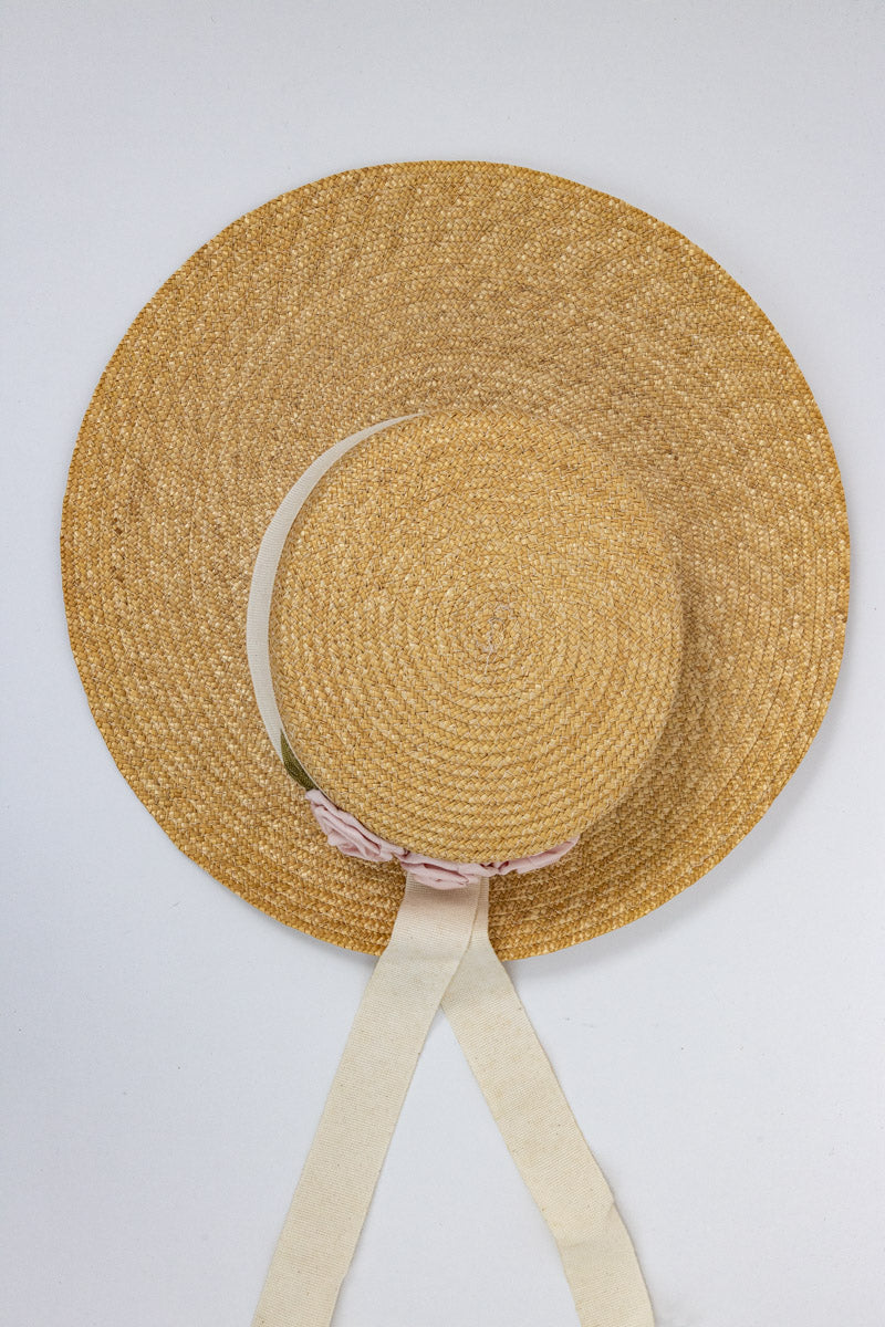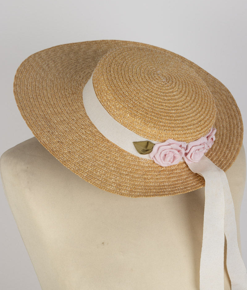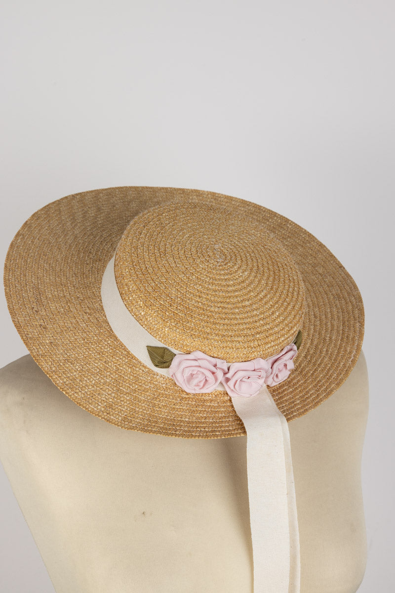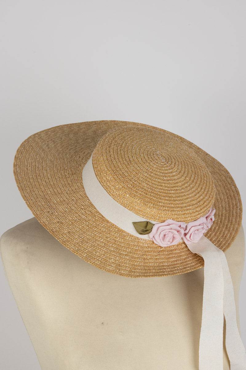 Бежевая соломенная шляпа от солнца Grevi с тремя розовыми розами и лентой идеально подходит для отдыха и загара.
