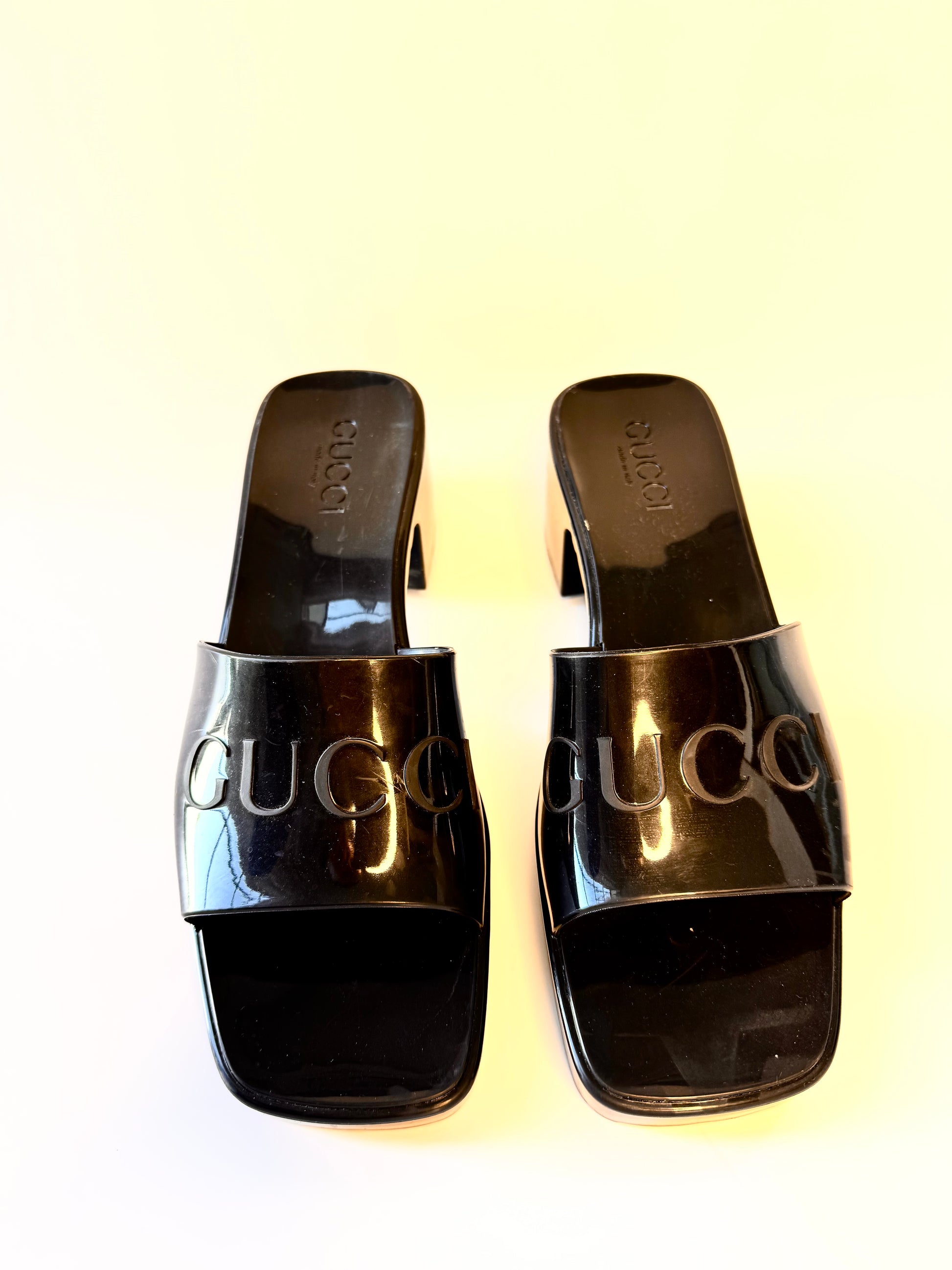 - Signature Design: The bold GUCCI logo embossed on the strap adds a touch of elegance and brand recognition, making these sandals instantly recognizable.