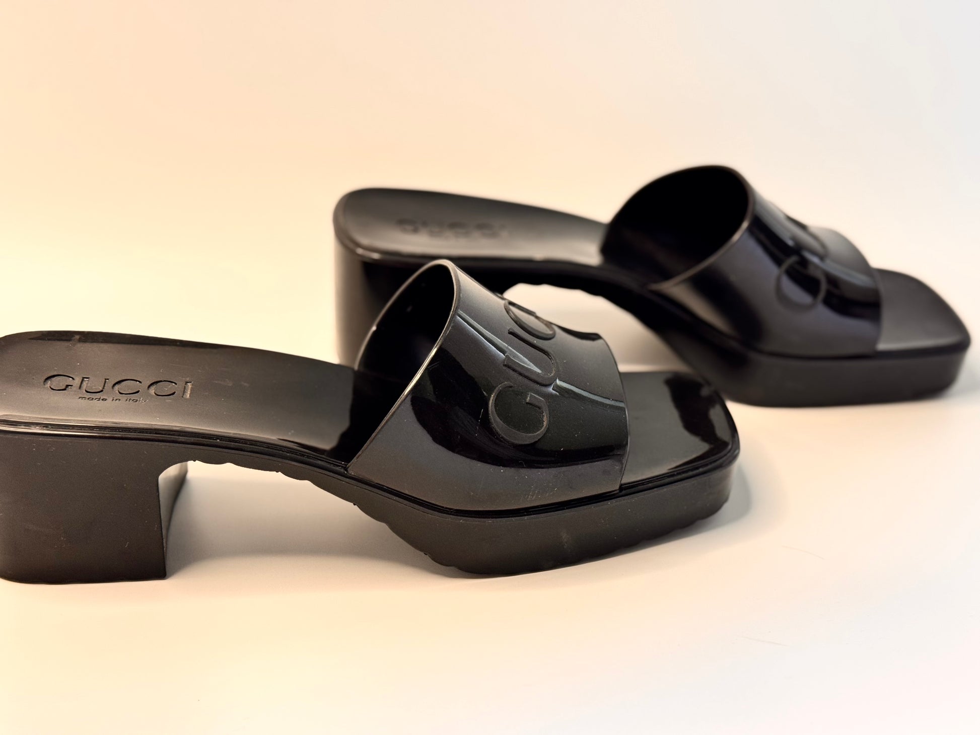 GUCCI Black Rubber Logo Slide Logo-Embossed Sandals Size 38 - New, Never Worn