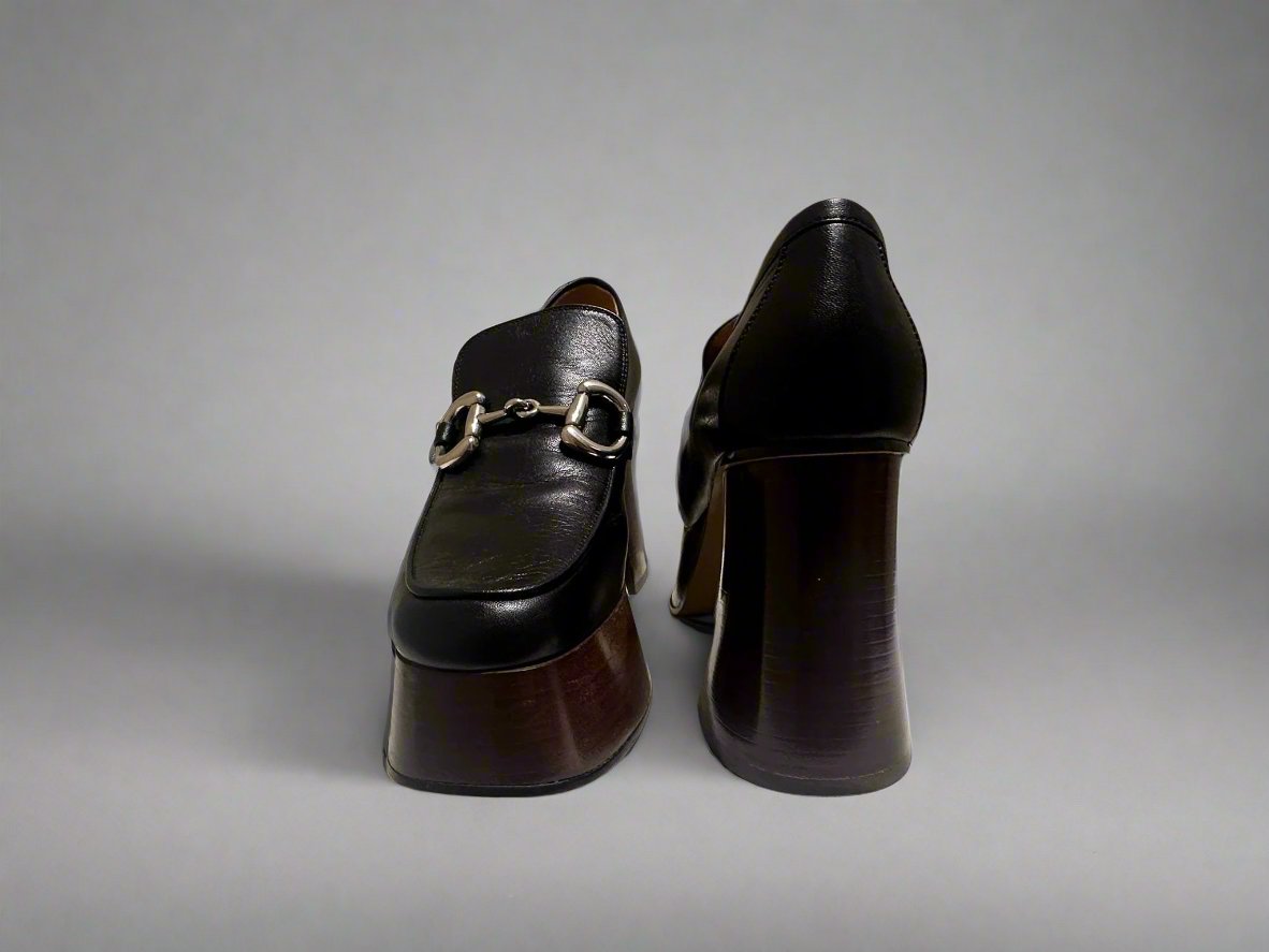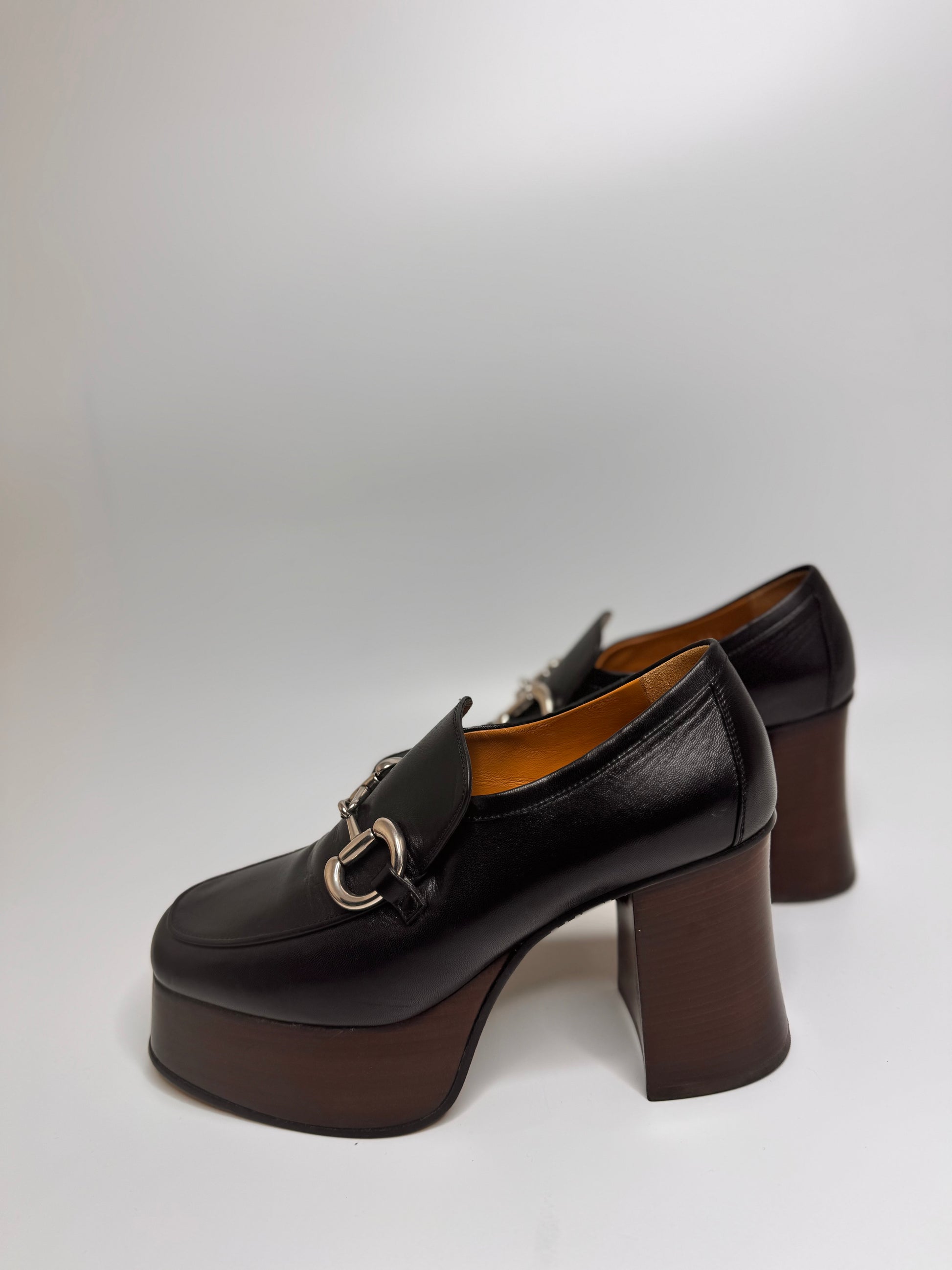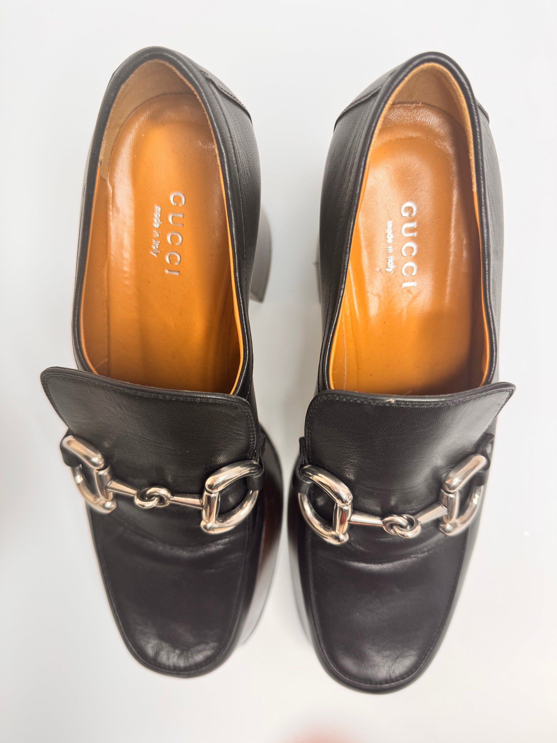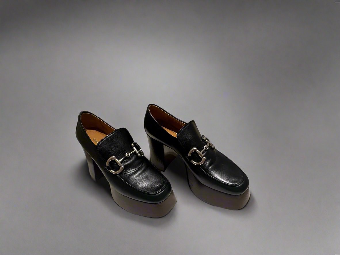 GUCCI Women's Black Platform Loafers with Horsebit size 37.5