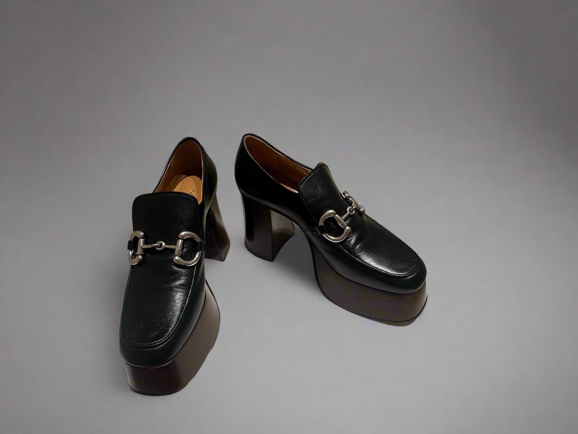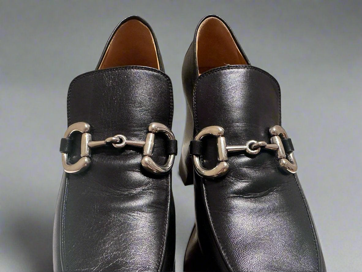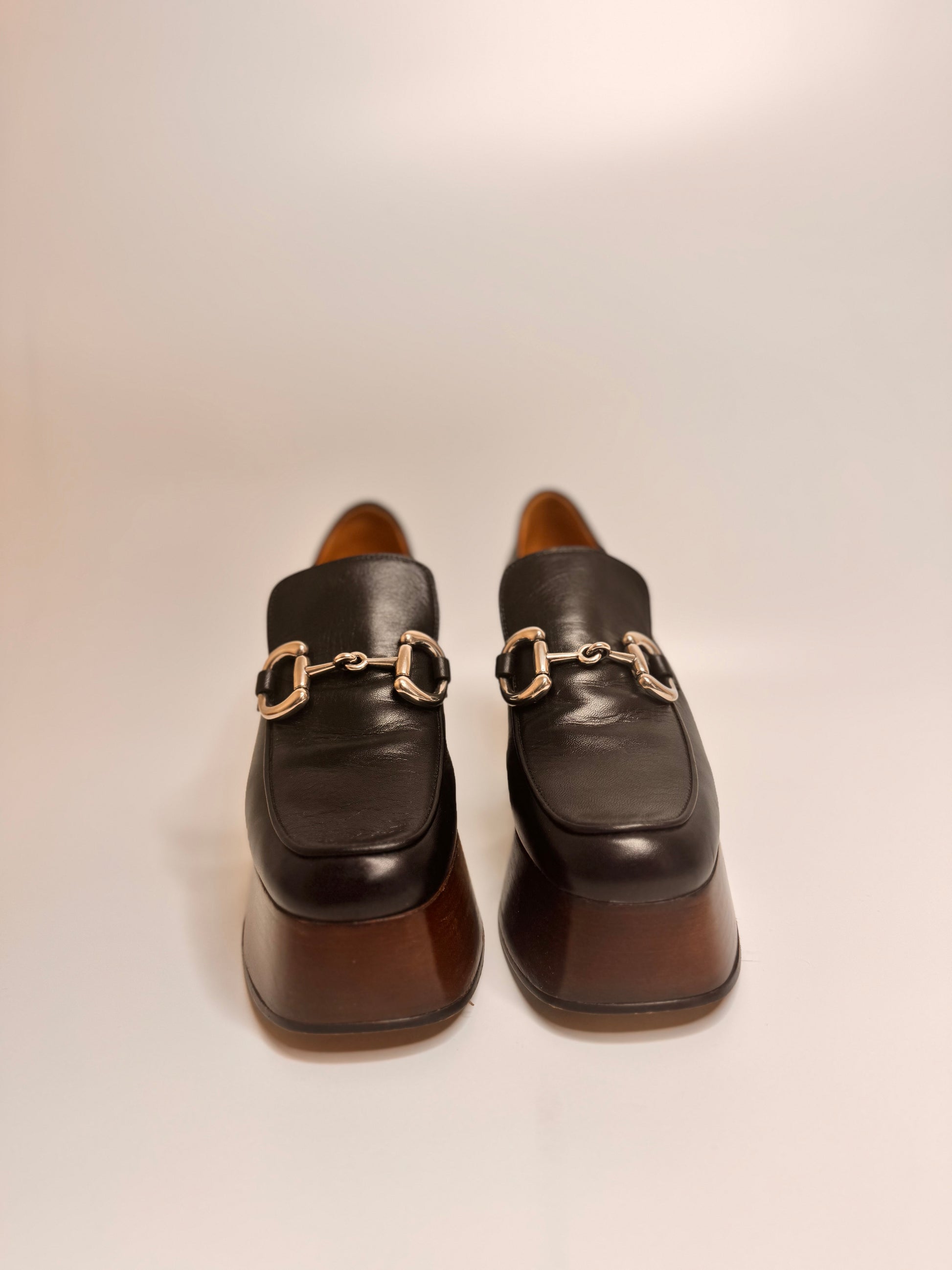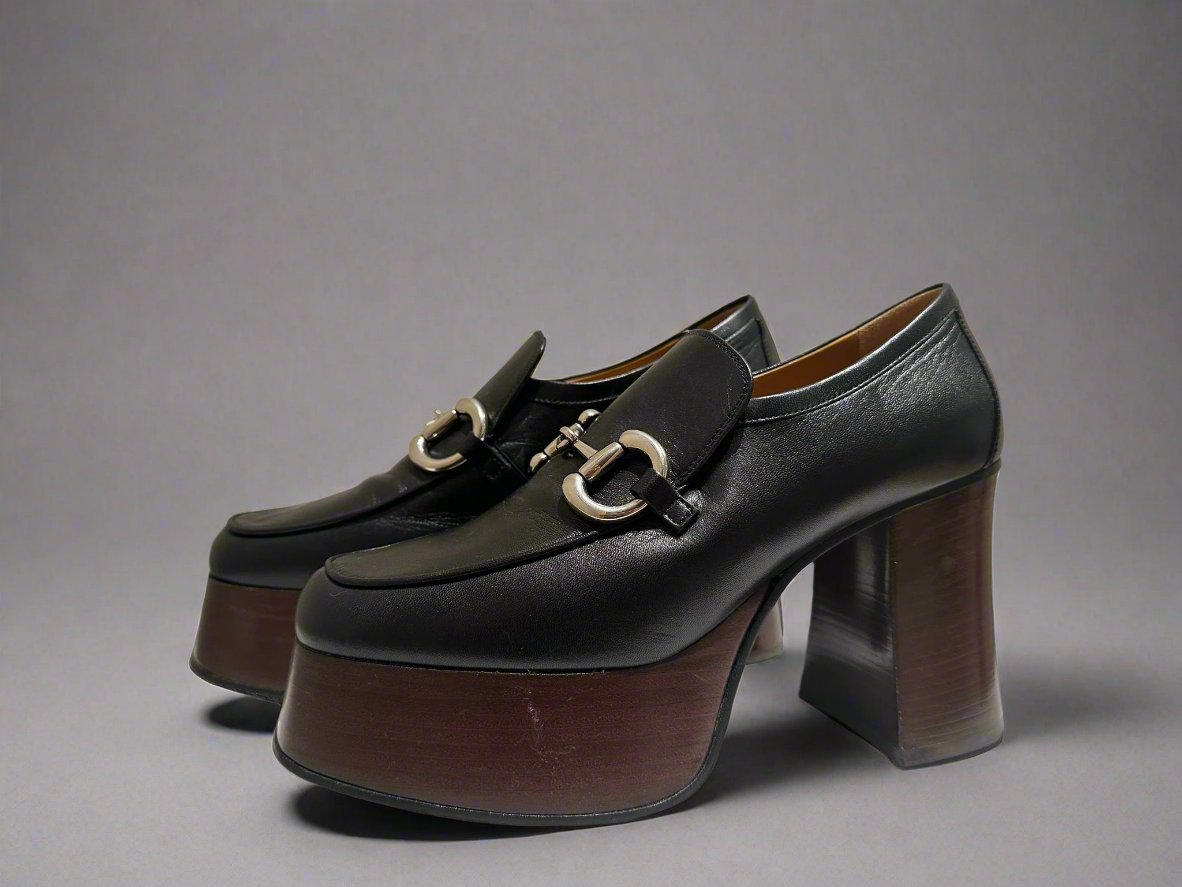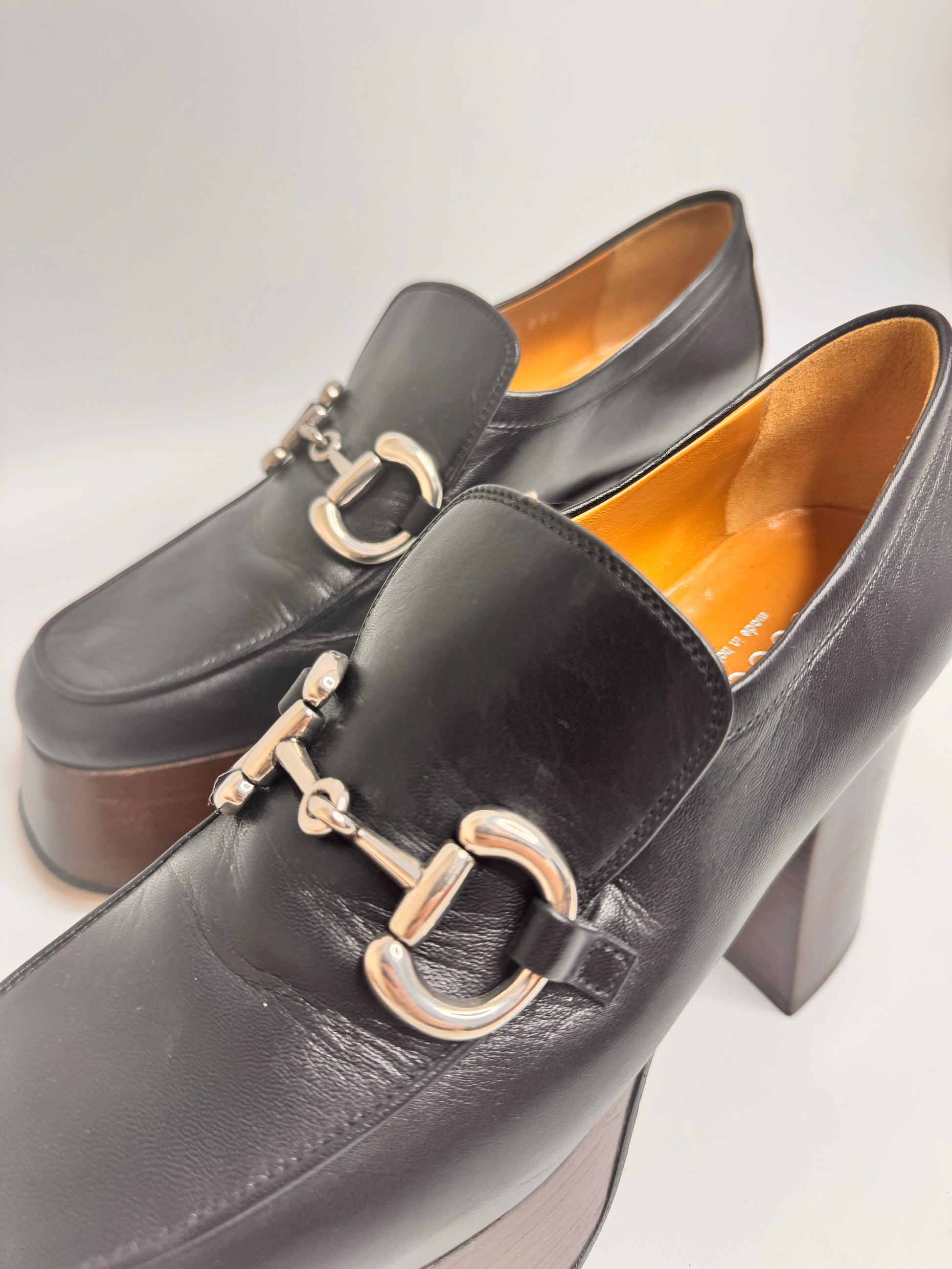 GUCCI Women's Black Platform Loafers with Horsebit size 37.5