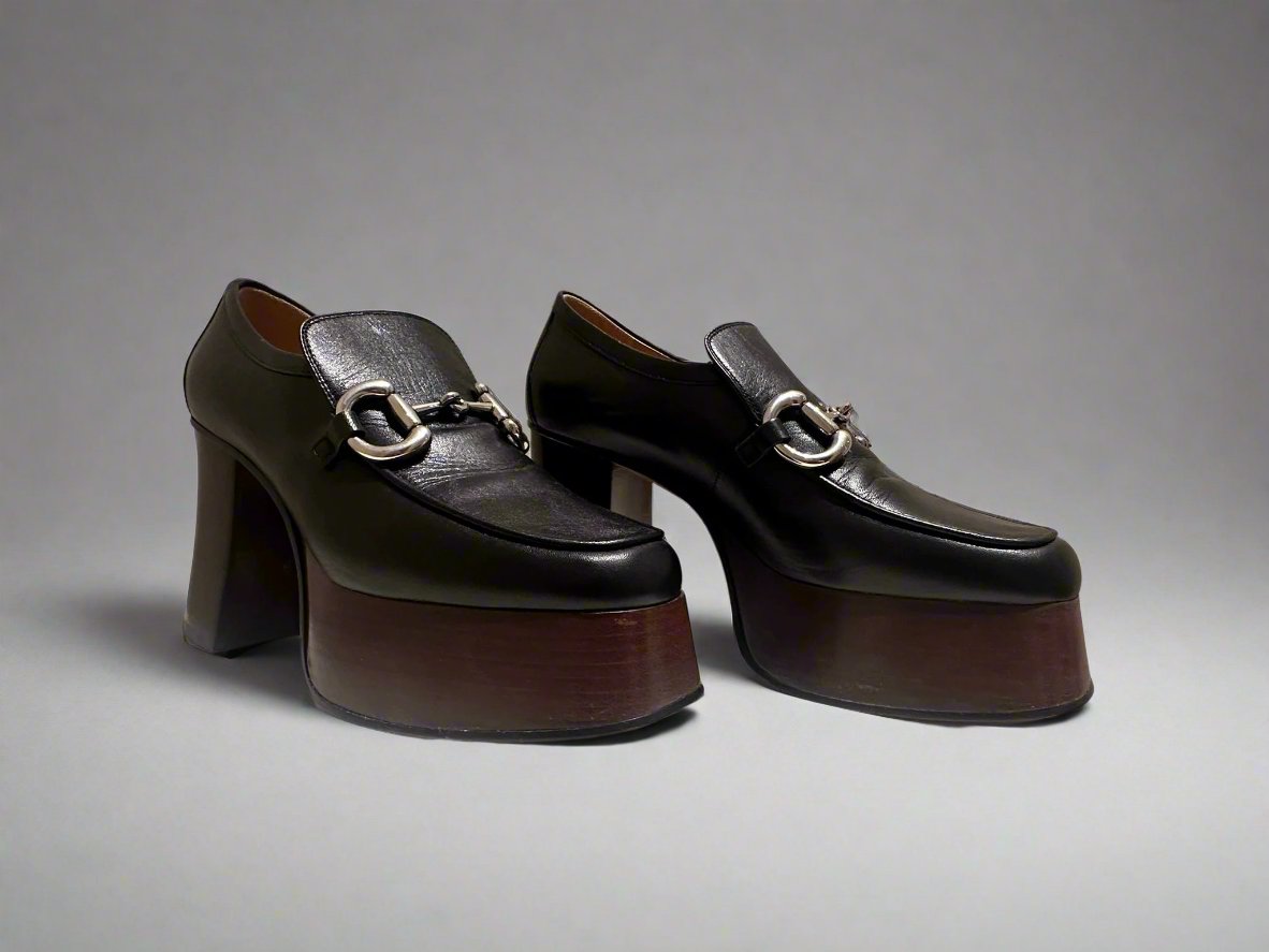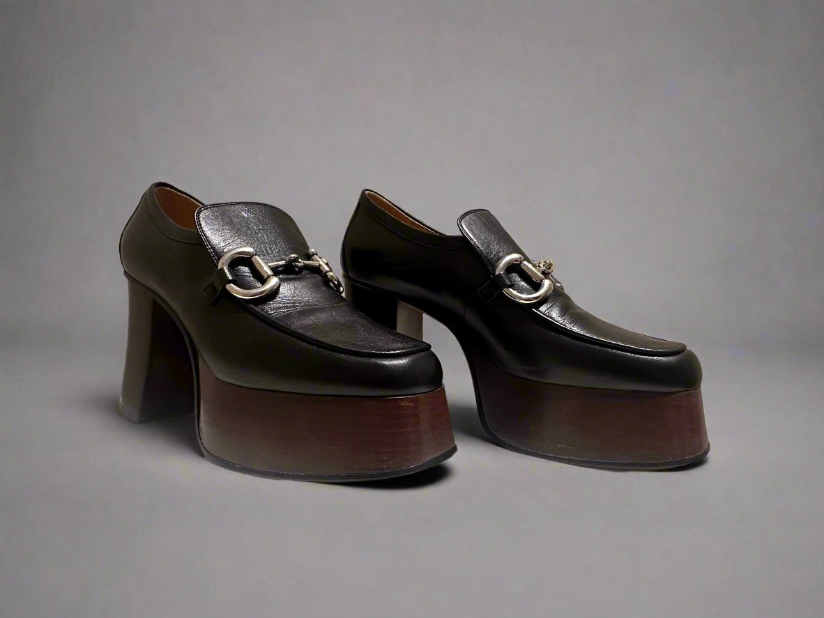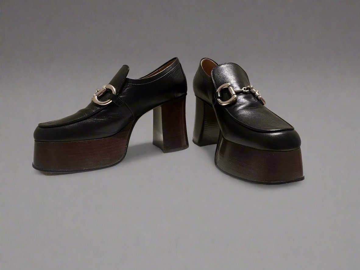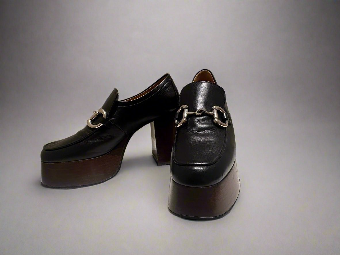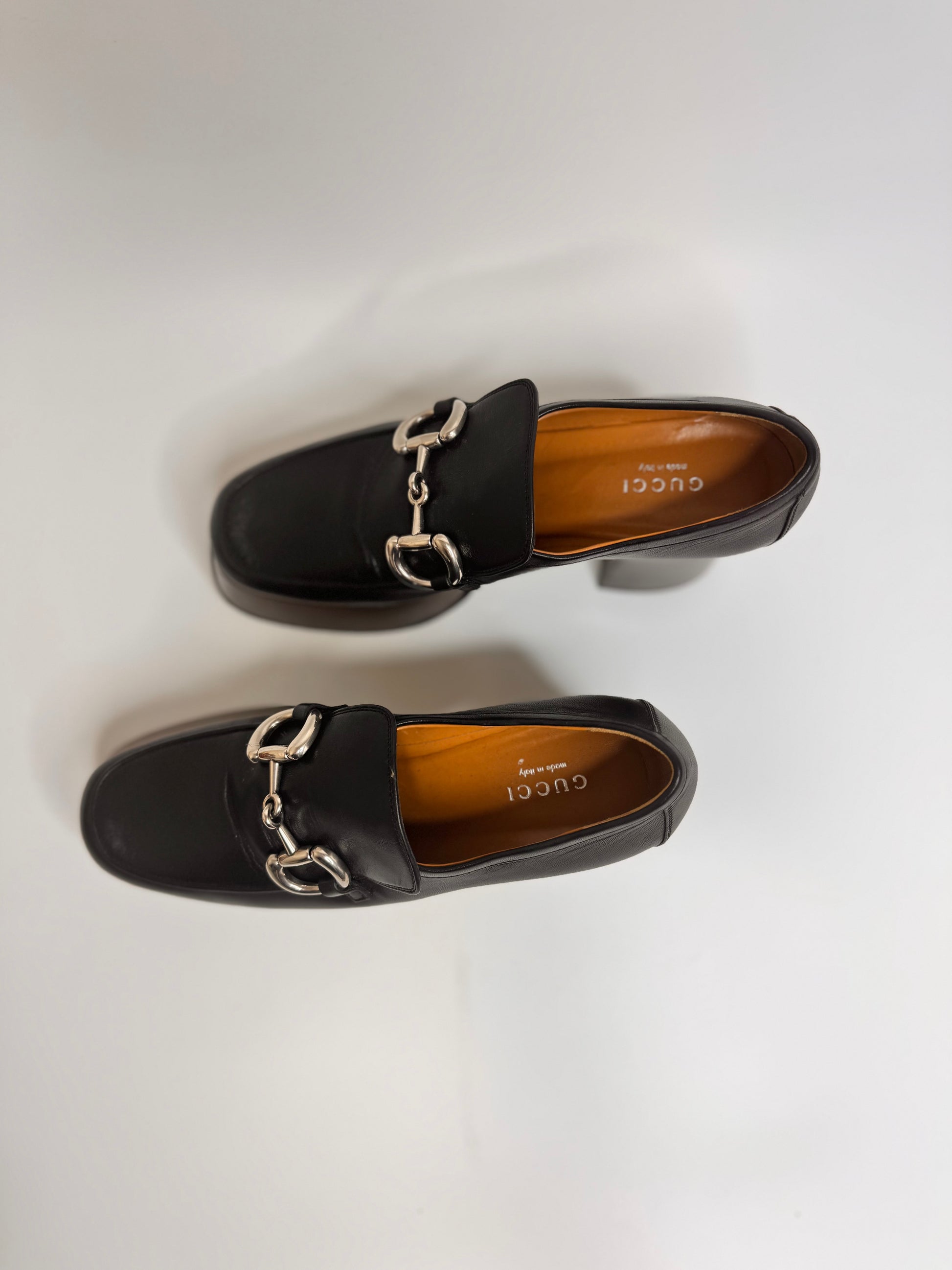 GUCCI Women's Black Platform Loafers with Horsebit size 37.5