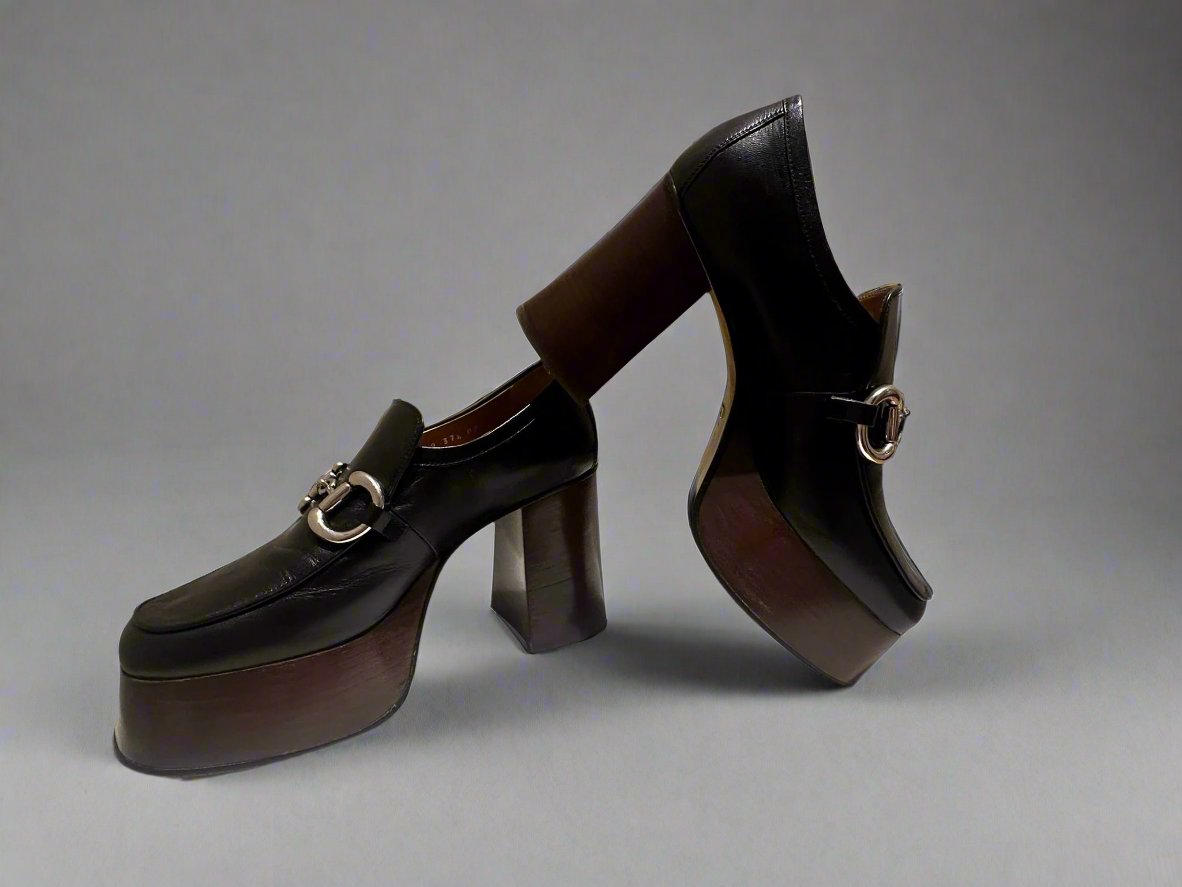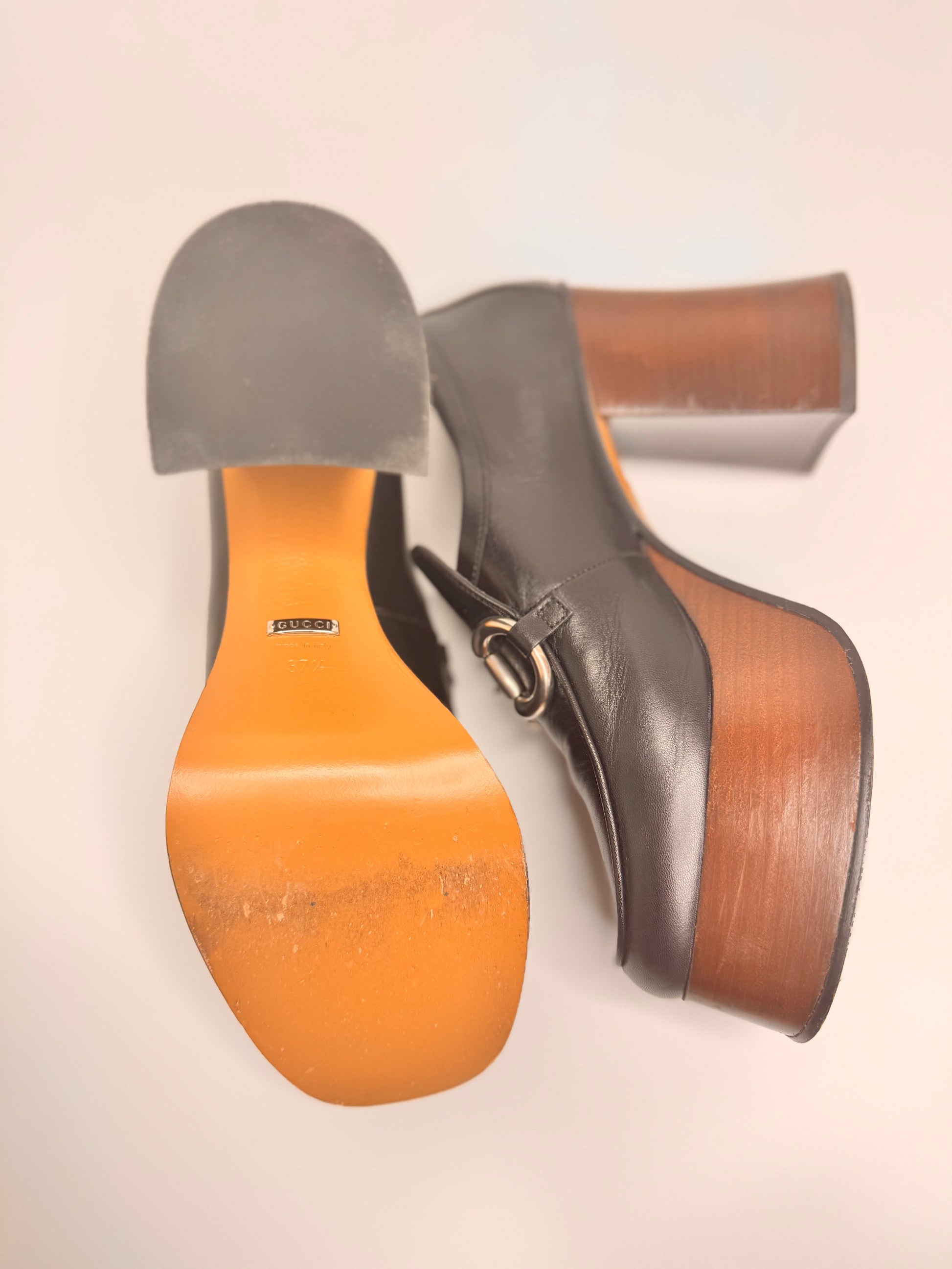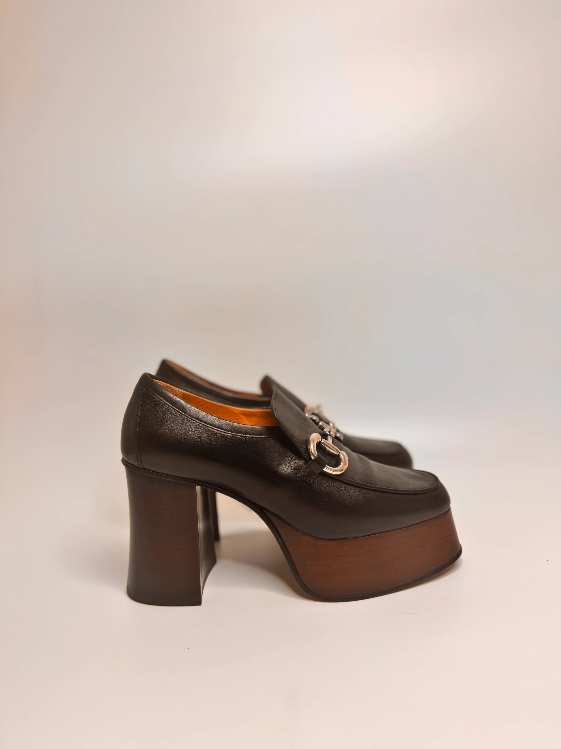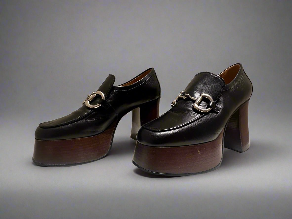 GUCCI Women's Black Platform Loafers with Horsebit size 37.5