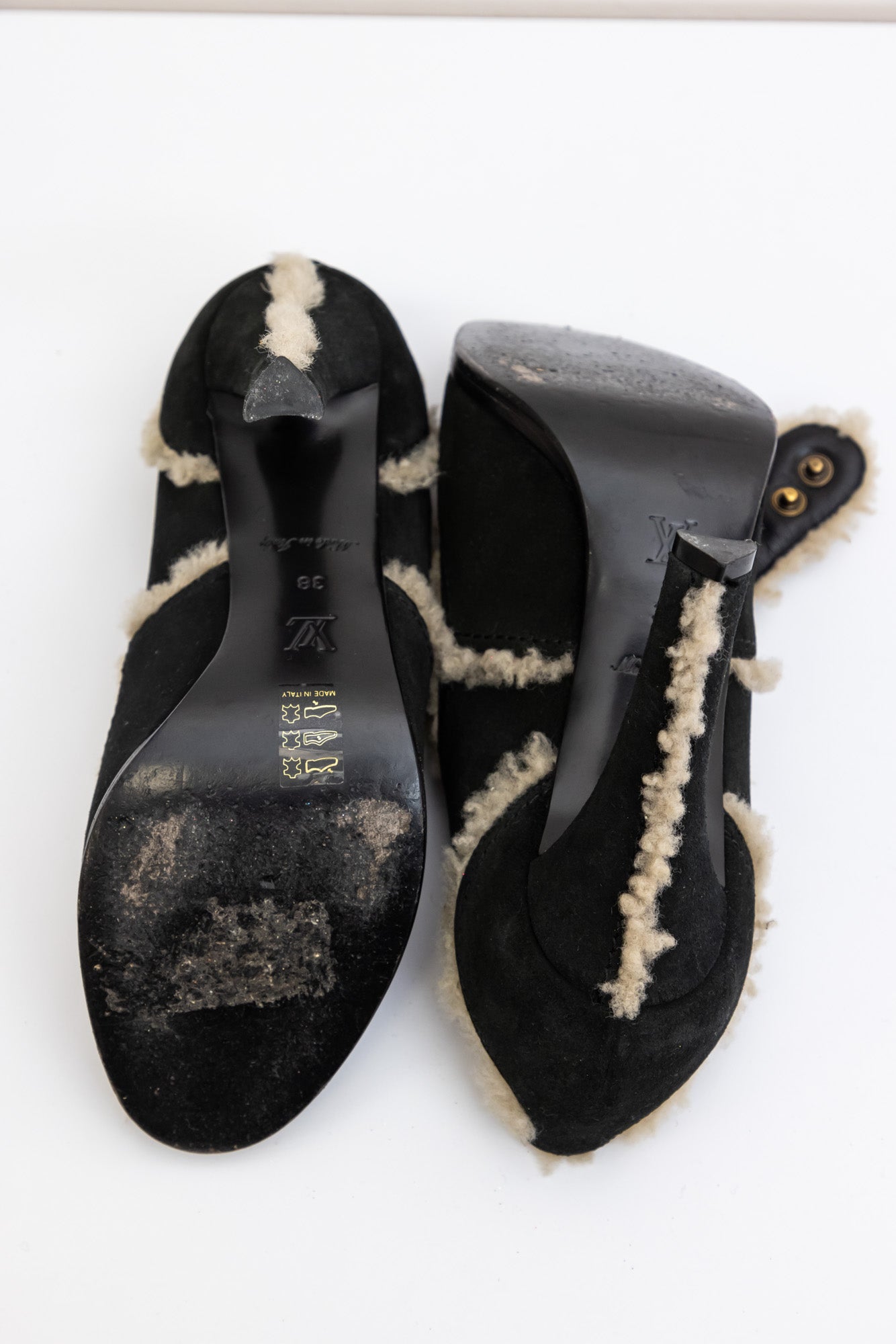 LOUIS VUITTON Кожаные туфли на каблуке с мехом