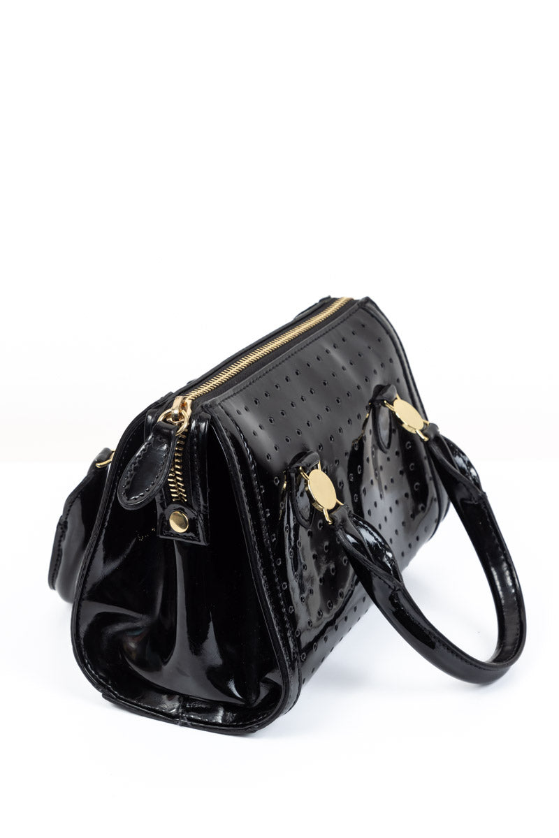 Эта сумка в очень хорошем состоянии изготовлена ​​в Италии, что гарантирует исключительное мастерство и долговечность. Изящная черная лакированная кожа с фирменными знаками Медузы сочетает в себе стиль и практичность в одном потрясающем изделии.