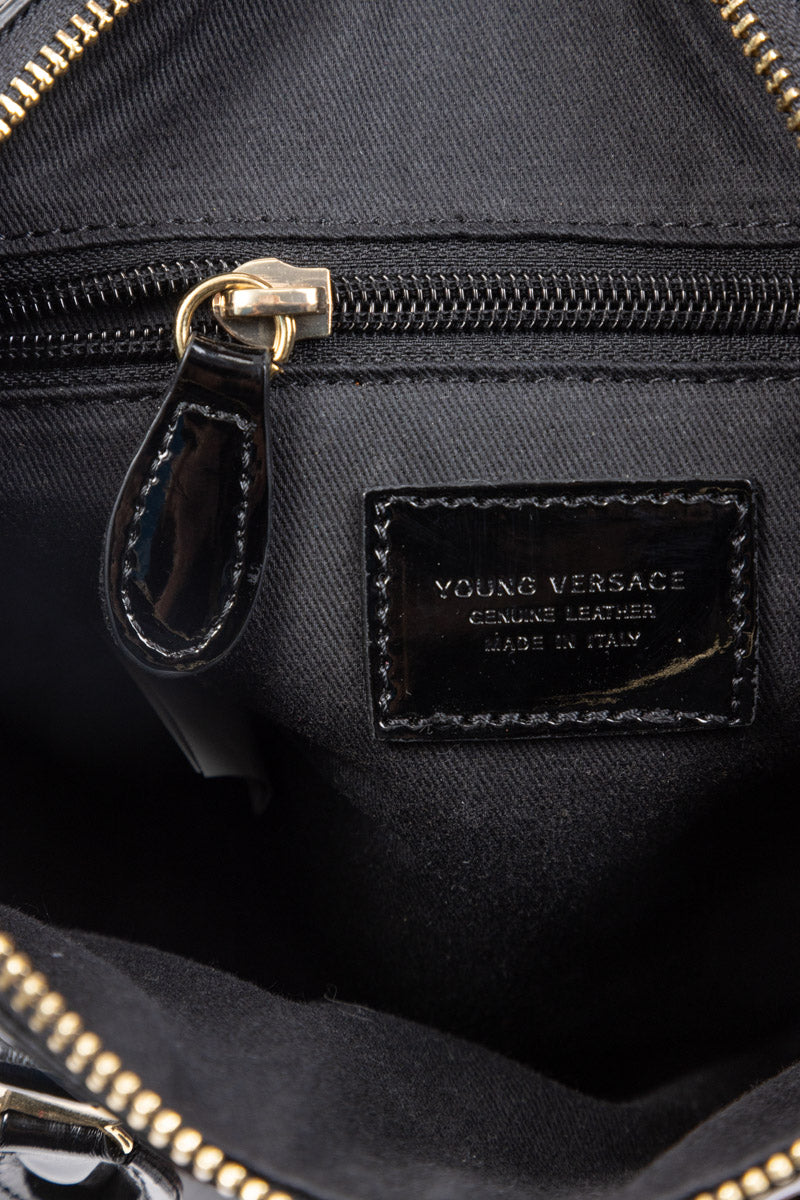 Добавьте нотку роскоши в образ вашего малыша с этой черной лакированной сумкой Young Versace, универсальным и модным аксессуаром. это точно произведет впечатление.